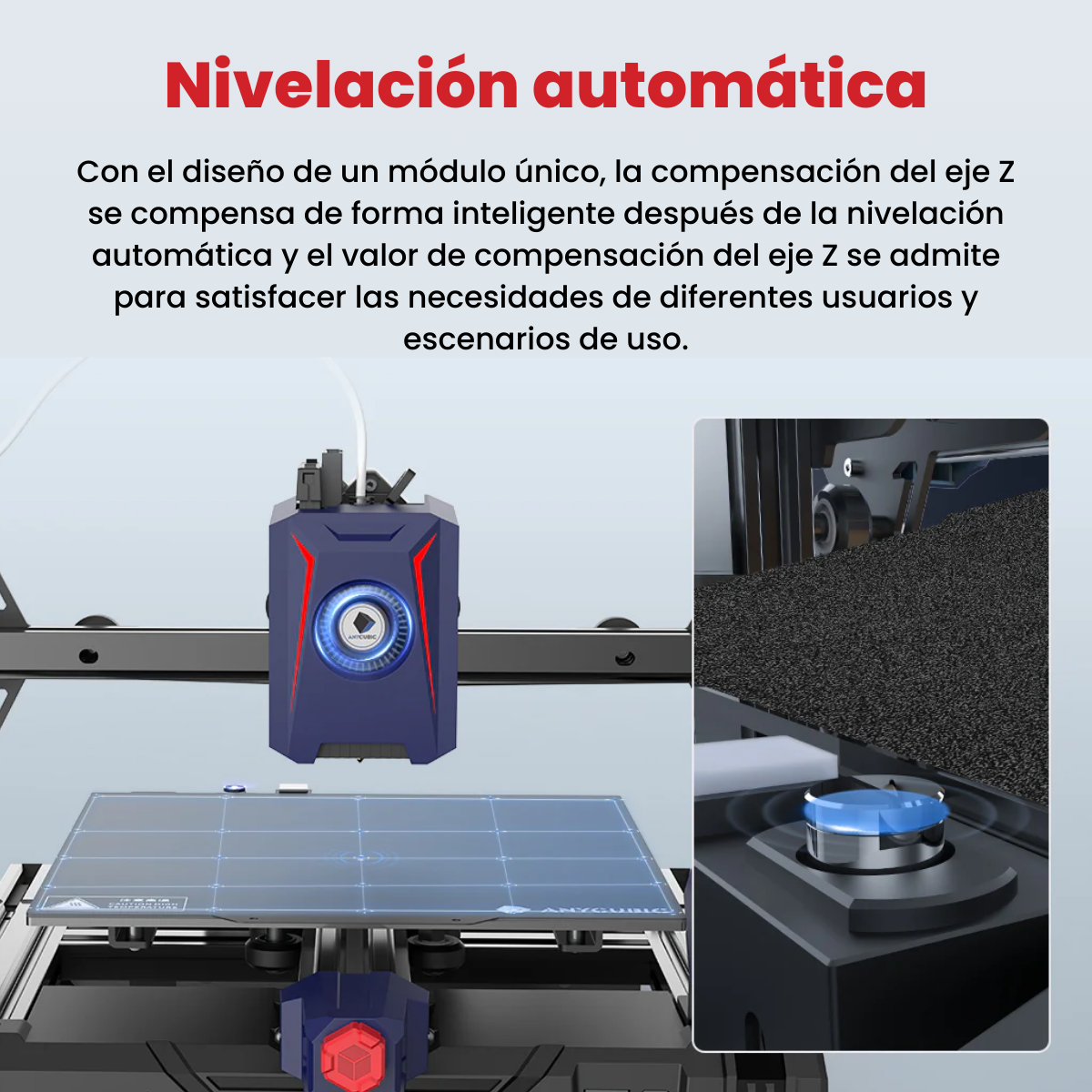 Nivelación Automática: Con LeviQ 2.0, Kobra 2 Neo viene con otra herramienta inteligente. Las irregularidades de la superficie de impresión se registran durante la nivelación automática y se compensan sobre la marcha mediante ajustes de offset Z. Esto se hace automáticamente o mediante valores definidos por el usuario, puedes elegir la opción que prefieras según tus necesidades.