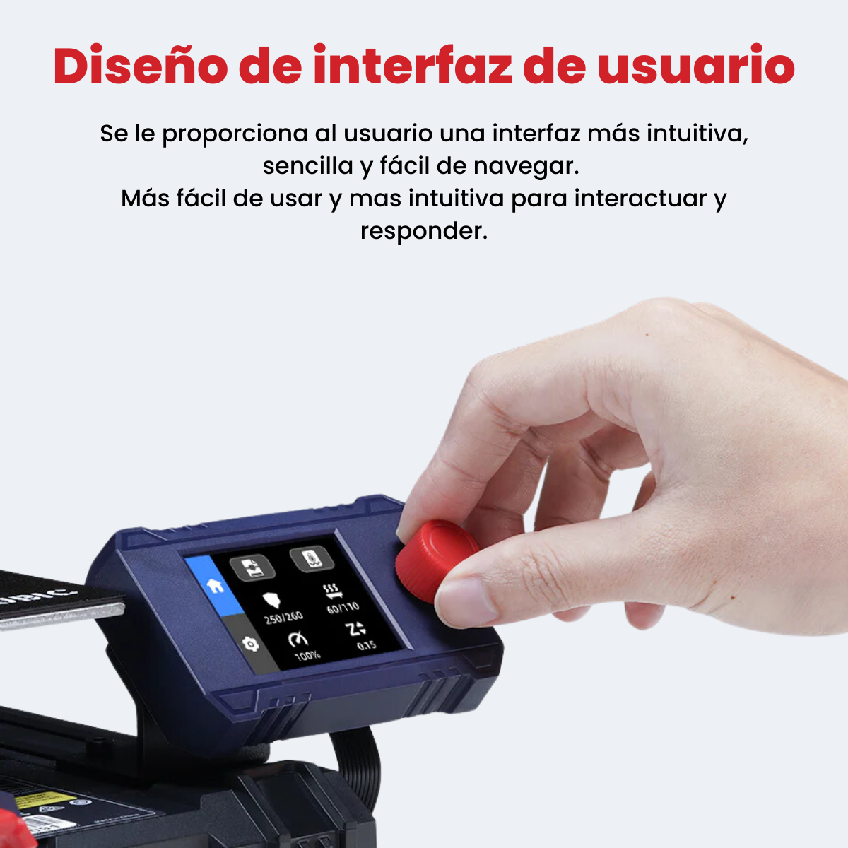 - Velocidad de impresión: 250mm/s Máximo. Recomendado 200 mm/s
