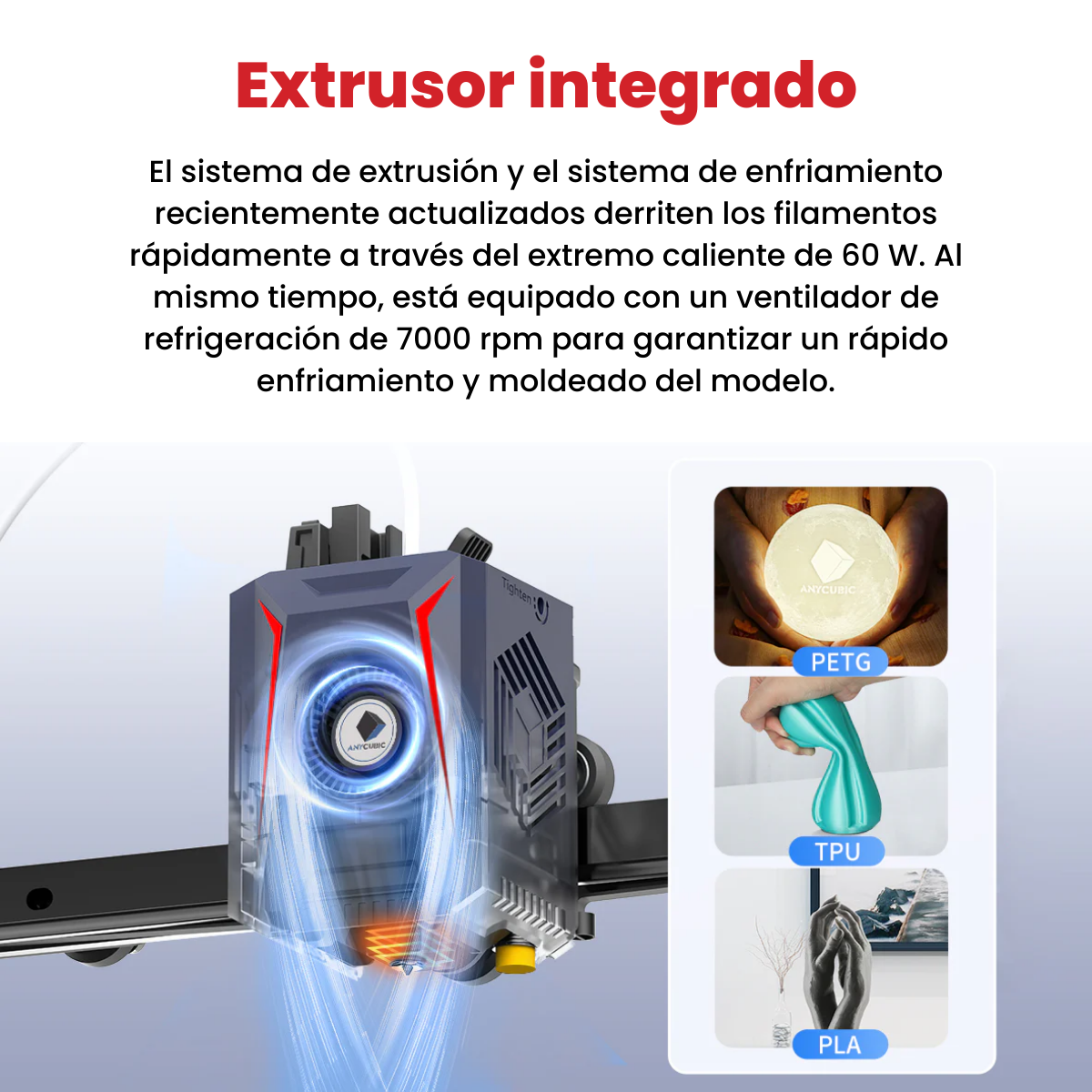 - Materiales Compatibles: PLA/ABS/PETG/TPU