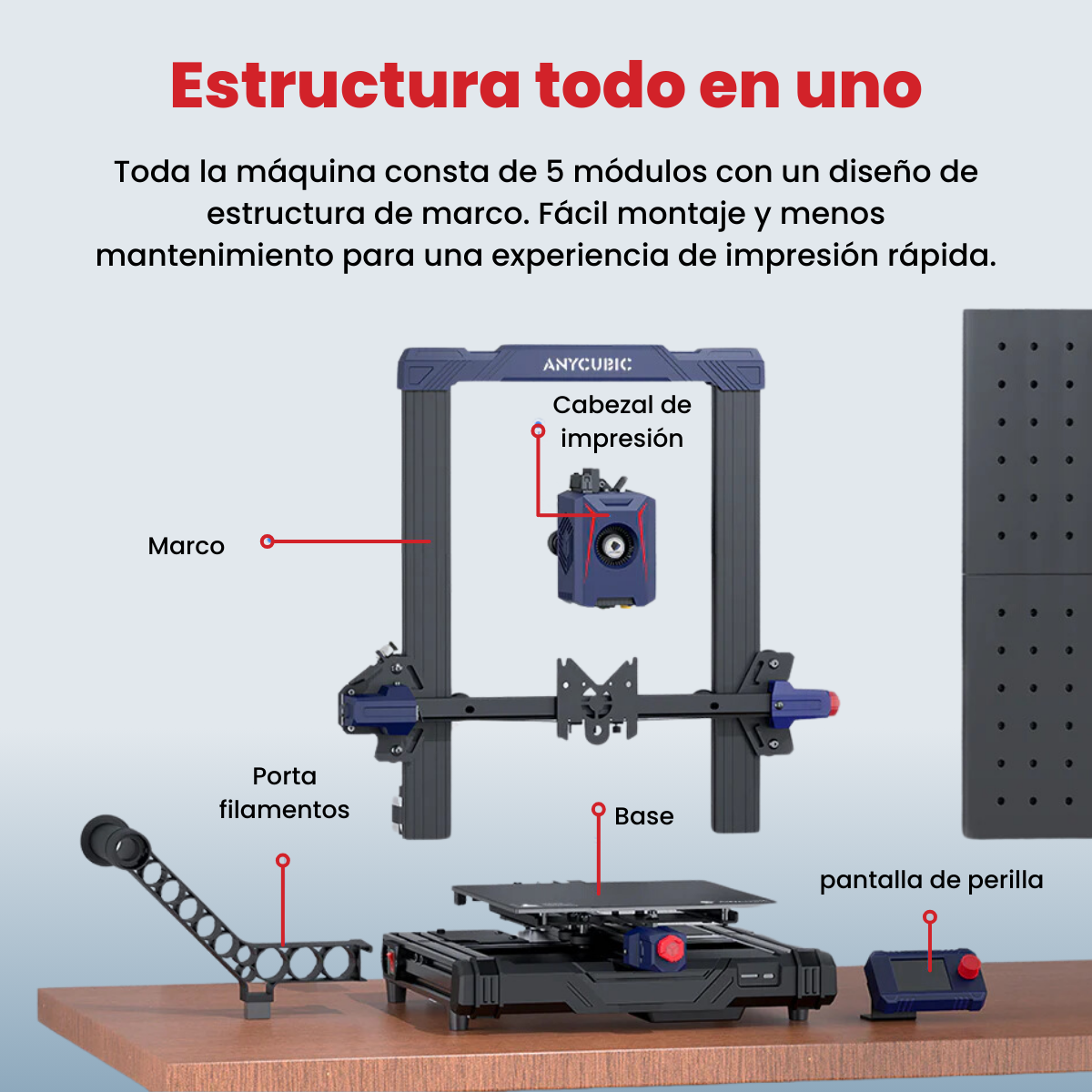 Estructura Todo en Uno: Toda la máquina consta de 5 módulos con un diseño de estructura de marco de puente grúa. Ensamblaje fácil y menos mantenimiento para una experiencia de impresión rápida.