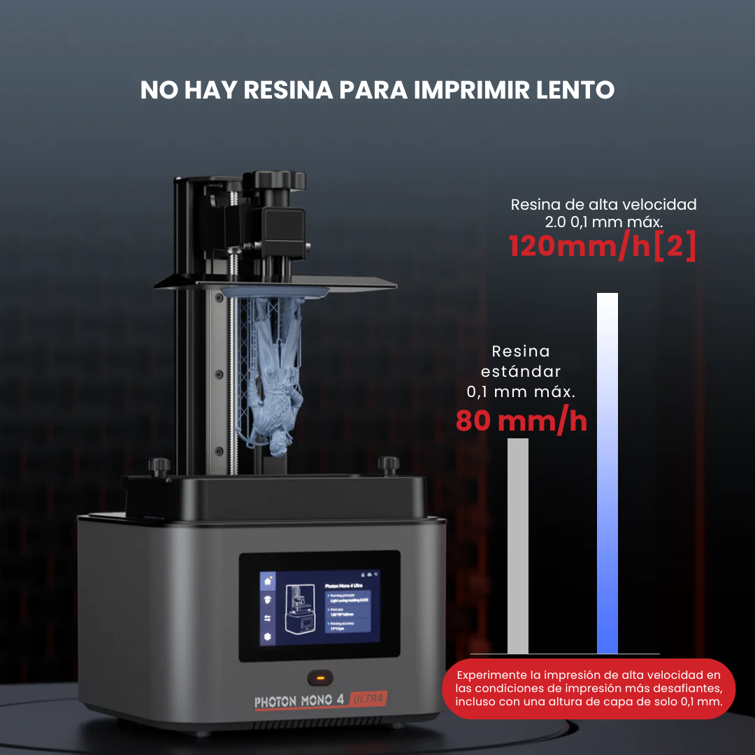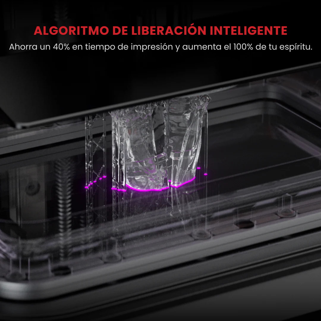 Innovaciones en el Proceso de Impresión: La película ACF de última generación del Photon Mono 4 Ultra maximiza la transmisión de luz y minimiza la textura mate, lo que resulta en tiempos de impresión más cortos. Además, una serie de algoritmos inteligentes permite ahorrar hasta un 40% en tiempo de impresión, optimizando cada capa de exposición y reduciendo movimientos innecesarios, lo que mejora la productividad de la impresora.