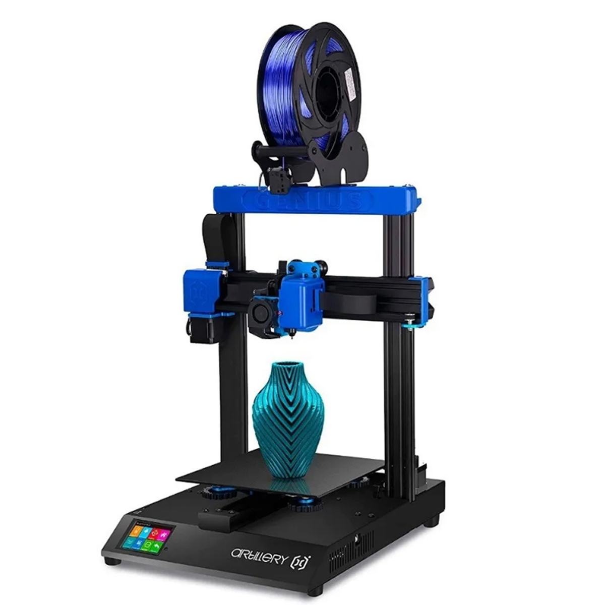La impresora 3D Artillery Genius Pro es una versión mejorada de su antecesora la Artillery Genius, esta nueva impresora cuenta con características muy similares a su modelo anterior pero nos ofrece diversas novedades que harán de esta una muy buena opción para convertirse en tu nueva impresora. La impresora 3D Artillery Genius Pro mantiene la extrusión directa de su antecesora, con esto se obtendrá un mejor control del filamento con lo que se podrá imprimir filamento flexible con mejores resultados y de una forma mucho más sencilla. Al igual que la Artillery Genius, este nuevo modelo llega equipado con boquilla tipo vulcano, una boquilla de buena calidad, la cual imprimirá a mayor velocidad sin perder calidad. Cuenta con un sistema de extrusión directa tipo titán el cual mejorará la fluidez del filamento por el hotend y con ello un mayor control durante la impresión. La impresora Artillery Genius Pro posee cama caliente de cristal cerámico con una mejor transmisión térmica que la cama de silicona del modelo anterior, con esto las piezas se adherirán mejor a la superficie. Una de las mejoras que incluye esta impresora 3D es el BL Touch, un sistema de calibrado automático, ahorrará mucho tiempo a la hora de calibrar la impresora. Estructura rígida y muy resistente de tipo cartesiana. El montaje de esta máquina es muy sencillo ya que se encuentra ensamblada al 90%, solo habrá que conectar cables y poner unos tornillos. La nueva impresora 3D Artillery Genius Pro trae con una nueva placa base, la cual incorpora drivers silenciosos que harán de esta una impresora casi imperceptible. Los drivers silenciosos incorporados en esta placa base son extremadamente silenciosos emitiendo sonido por debajo de los 70dBA. La placa base incorporada es la Artillery Ruby 32 propia de la marca. Al igual que su antecesora esta impresora cuenta con pantalla TFT táctil de 2,8 pulgadas acompañada de un sistema de uso muy sencillo e intuitivo, completamente en español.