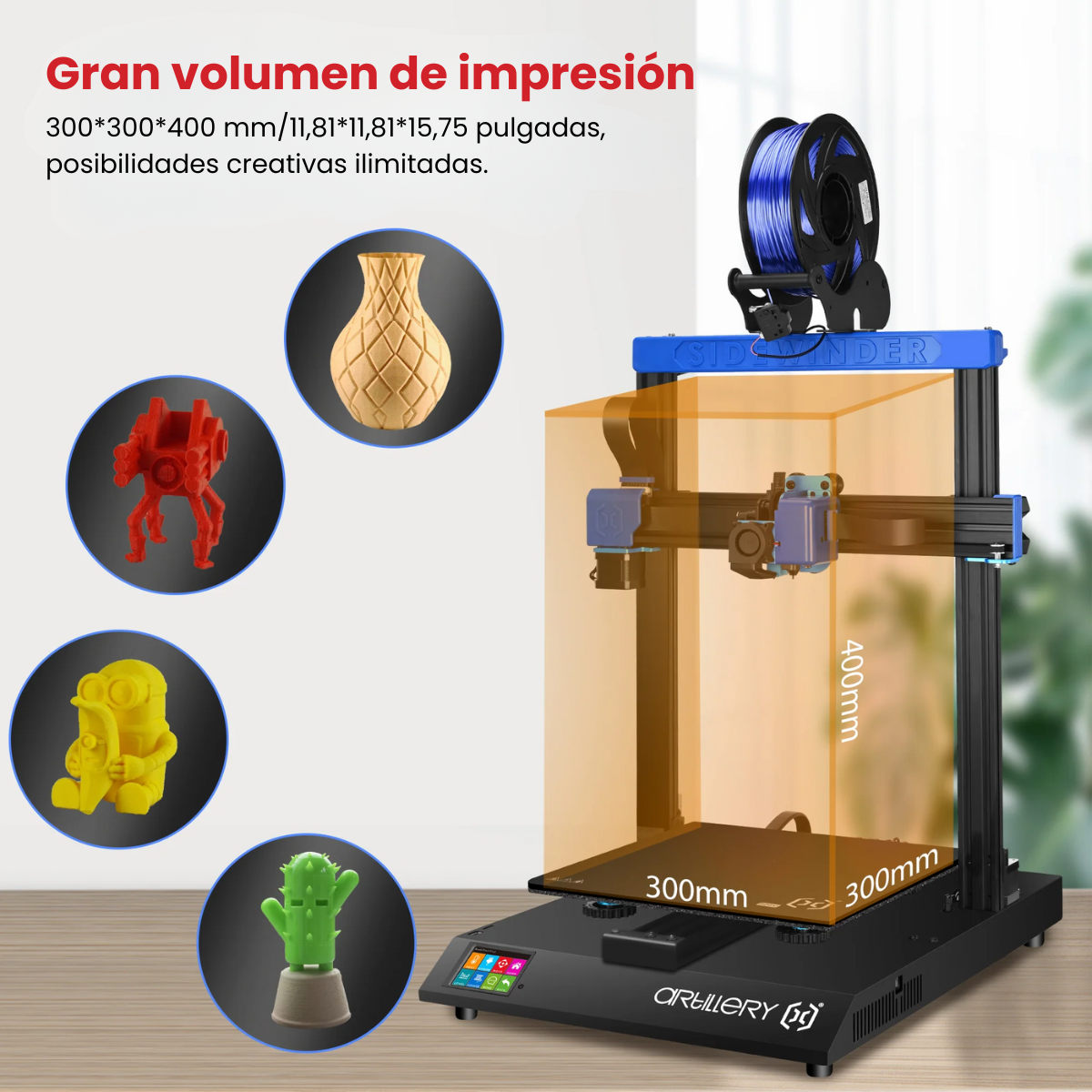 - Volumen de impresión: 300 x 300 x 400 mm