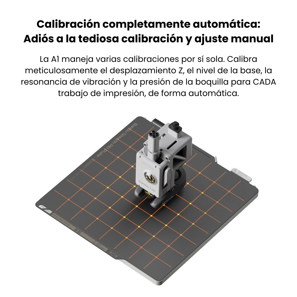 Calibración totalmente automática: El A1 gestiona por sí solo varias calibraciones meticulosamente. Calibra la alutra Z, el nivel de la cama y la resonancia de las boquilla para CADA impresión de forma automáticamente.