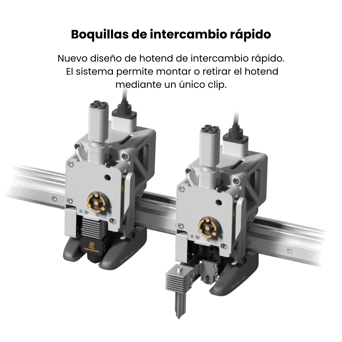 Boquilla de cambio rápido: Nuevo diseño de hotend de cambio rápido, el hotend se pone y se quita con un solo clip.