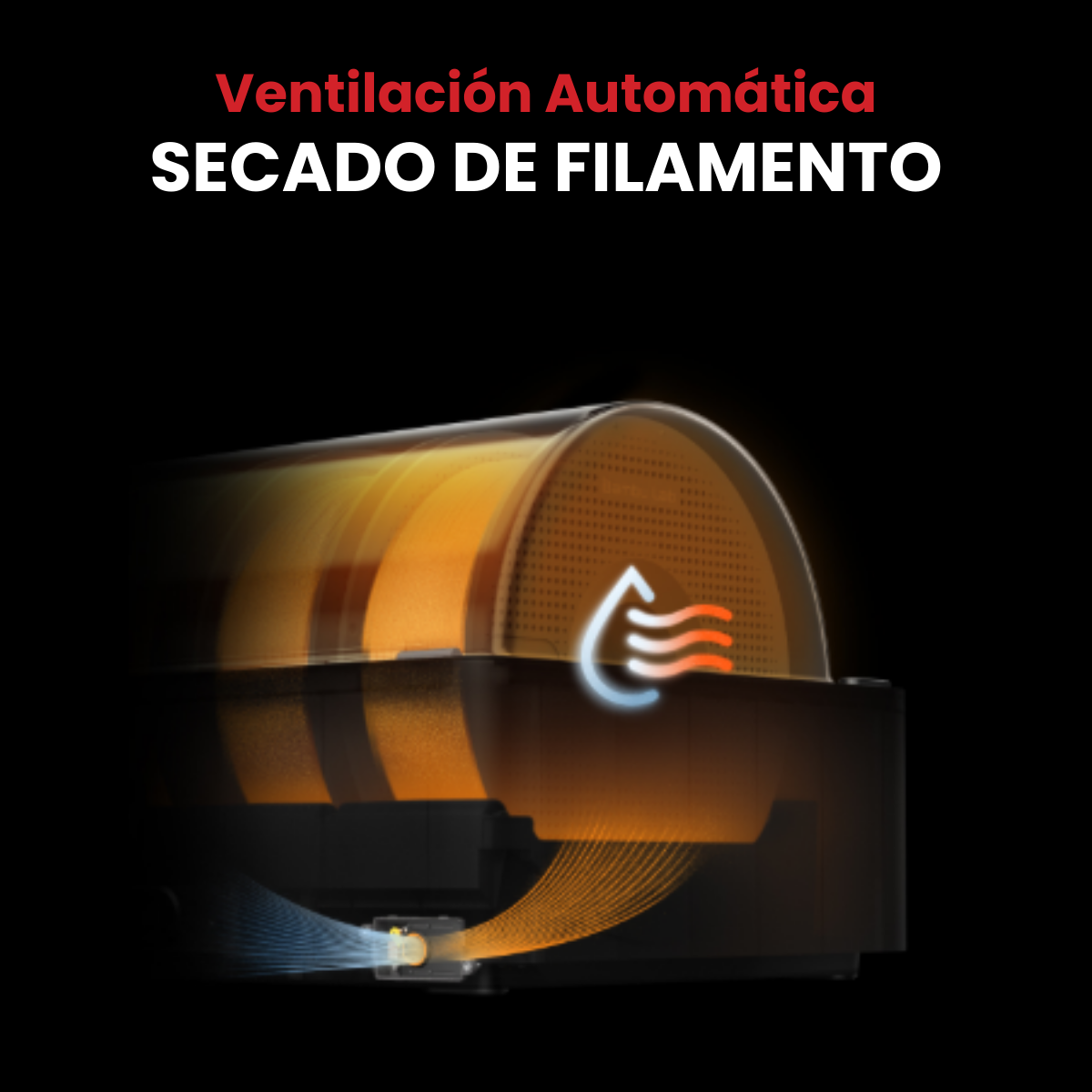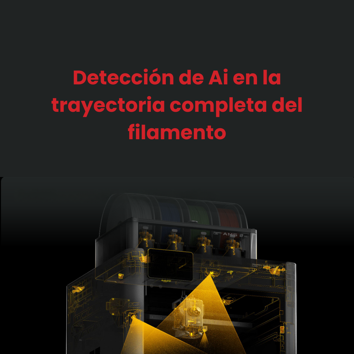 El Sistema Automático de Materiales (AMS 2 Pro) gestiona el filamento, permite cambios automáticos durante la impresión y ofrece secado auto-rotativo, optimizando la producción sin interrupciones. - CONTROL INTELIGENTE