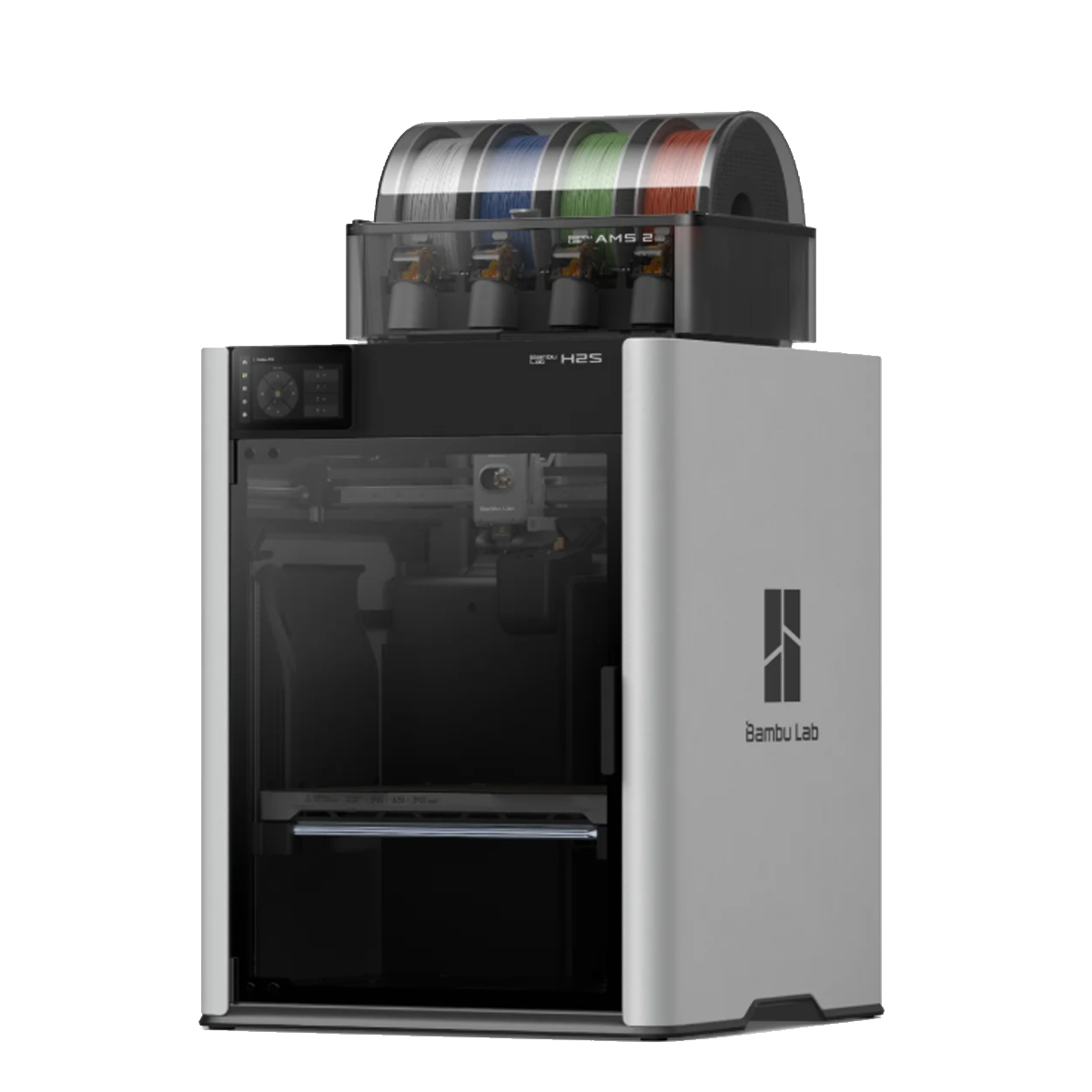 Equipada con una boquilla quick-swap de alta precisión, la H2S permite la impresión de múltiples materiales y colores con eficiencia mejorada y reducción del tiempo de producción gracias al AMS 2 Pro. - SISTEMA AMS 2 PRO INCLUIDO