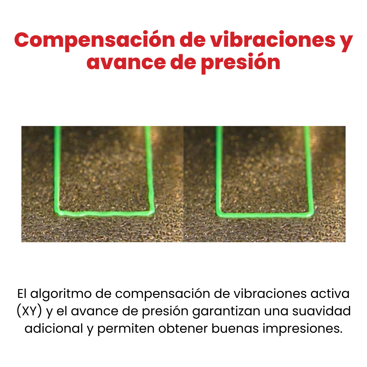 La suavidad y la calidad de impresión se mejoran gracias al algoritmo de compensación activa de vibraciones (XY) y al avance de presión. - EXTRUSORA DE ACCIONAMIENTO DIRECTO
