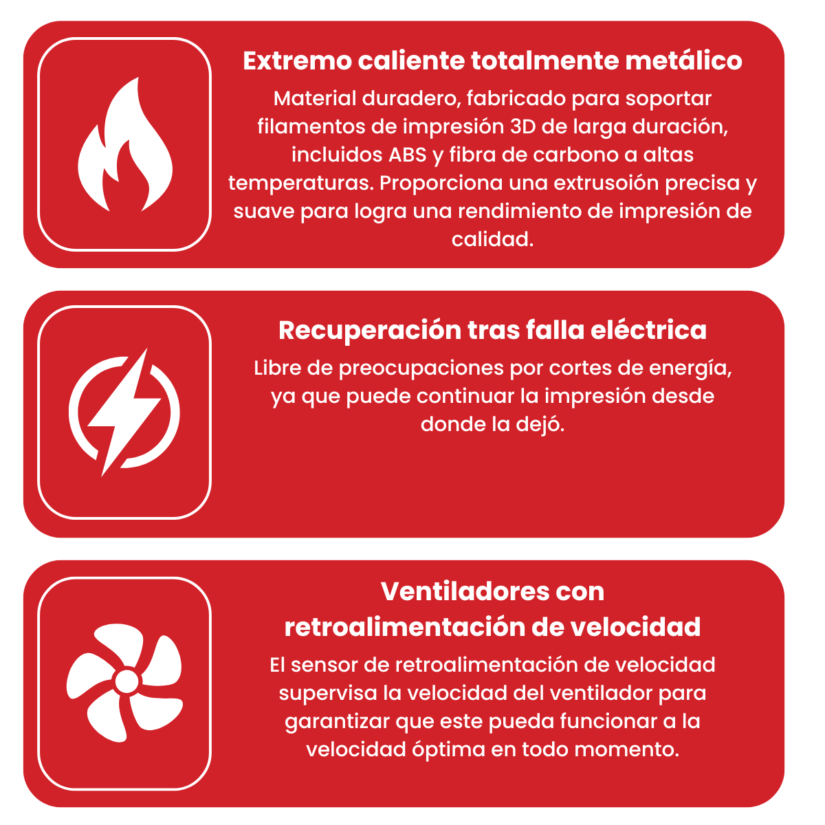 El sensor de velocidad monitorea la velocidad del ventilador asegurando que el ventilador opere a su velocidad óptima en todo momento. - TODO EL HOTEND DE METAL