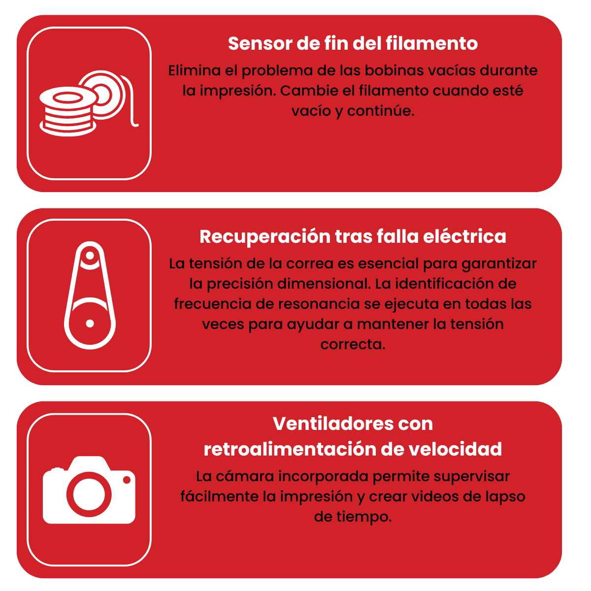 Sin preocupaciones por un corte de energía, puede reanudar la impresión desde donde la dejó. - CÁMARA INCORPORADA