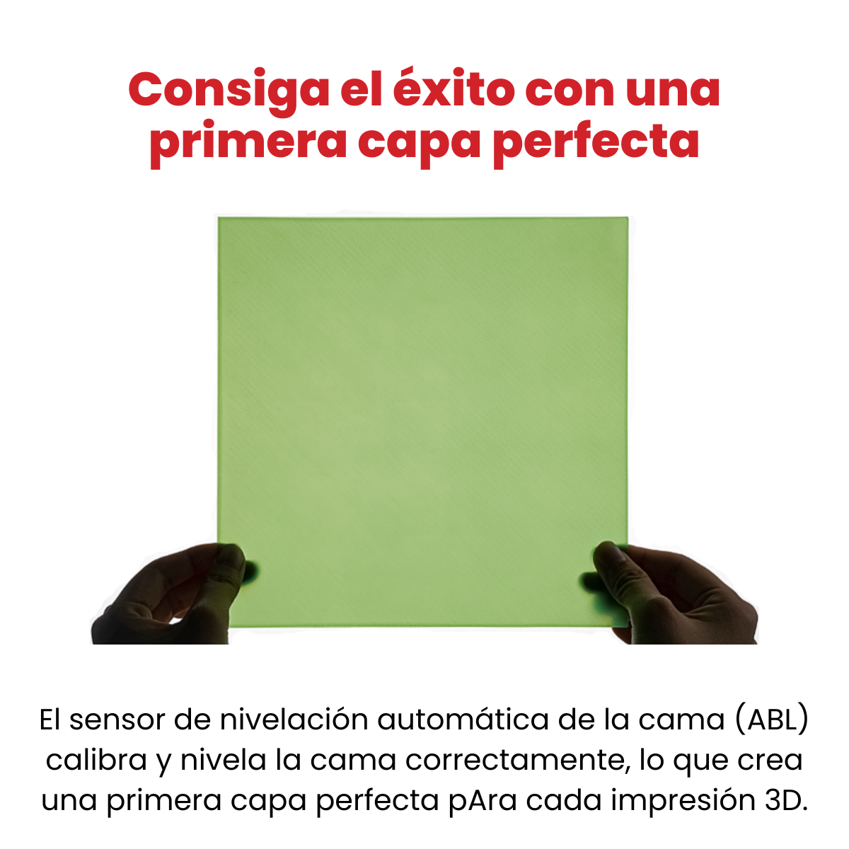 Logre una impresión exitosa desde el principio con una capa inicial impecable. La cama se calibra y nivela automáticamente gracias al sensor de nivelación automática (ABL), lo que garantiza una primera capa perfecta en cada impresión en 3D. - BAMBU STUDIO Y BAMBU HANDY