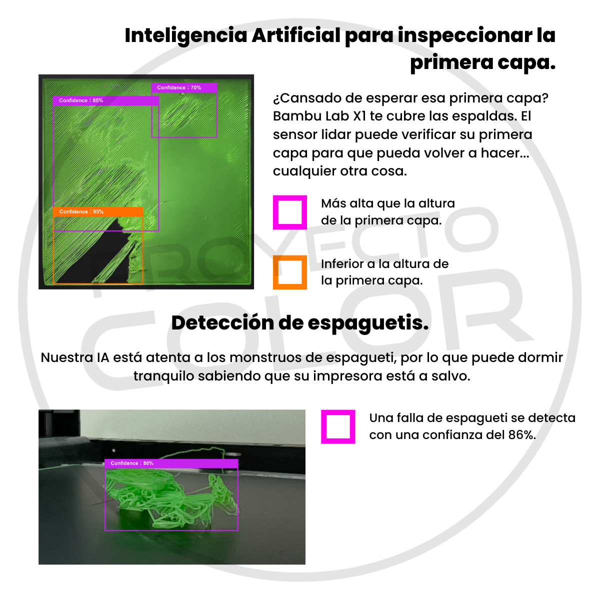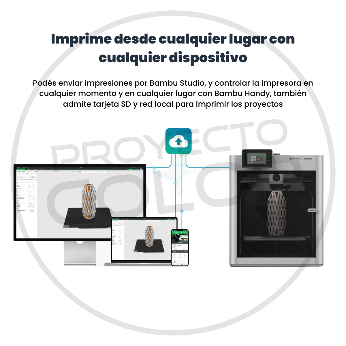 Bambu Lab es una empresa de tecnología de consumo que se centra en las impresoras 3D de escritorio. Comenzando con la serie X1, Bambu Lab construye impresoras 3D de última generación que rompen las barreras entre los mundos digital y físico, llevando la creatividad a un nivel completamente nuevo. Bambu Lab X1 Carbon, equipado con enfriamiento adicional y una boquilla endurecida y un engranaje impulsor carburado, abre una selección más amplia de materiales, incluidos PA, PC, PET y TPU, y se especializa en polímeros reforzados con fibra de vidrio y fibra de carbono. Nuestra IA está atenta a los monstruos de espagueti, por lo que puede dormir tranquilo sabiendo que su impresora está a salvo de este flagelo. Doble nivelación automática de la cama para impresiones doblemente garantizadas. ¿Cansado de esperar esa primera capa? El sensor lidar puede verificar su primera capa para que pueda volver a hacer… cualquier otra cosa… IMPORTANTE: El AMS incluido no siempre viene en la misma caja con la impresora. En el caso de no disponer de cajas para combo, el AMS se enviará en una caja separada. Todos nuestros AMS son 100% originales con garantía oficial Bambu Lab.