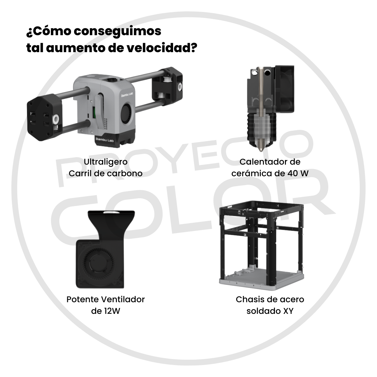 Capacidad de varios colores y materiales, impresión hasta en 16 colores* (*Se requieren varios AMS)