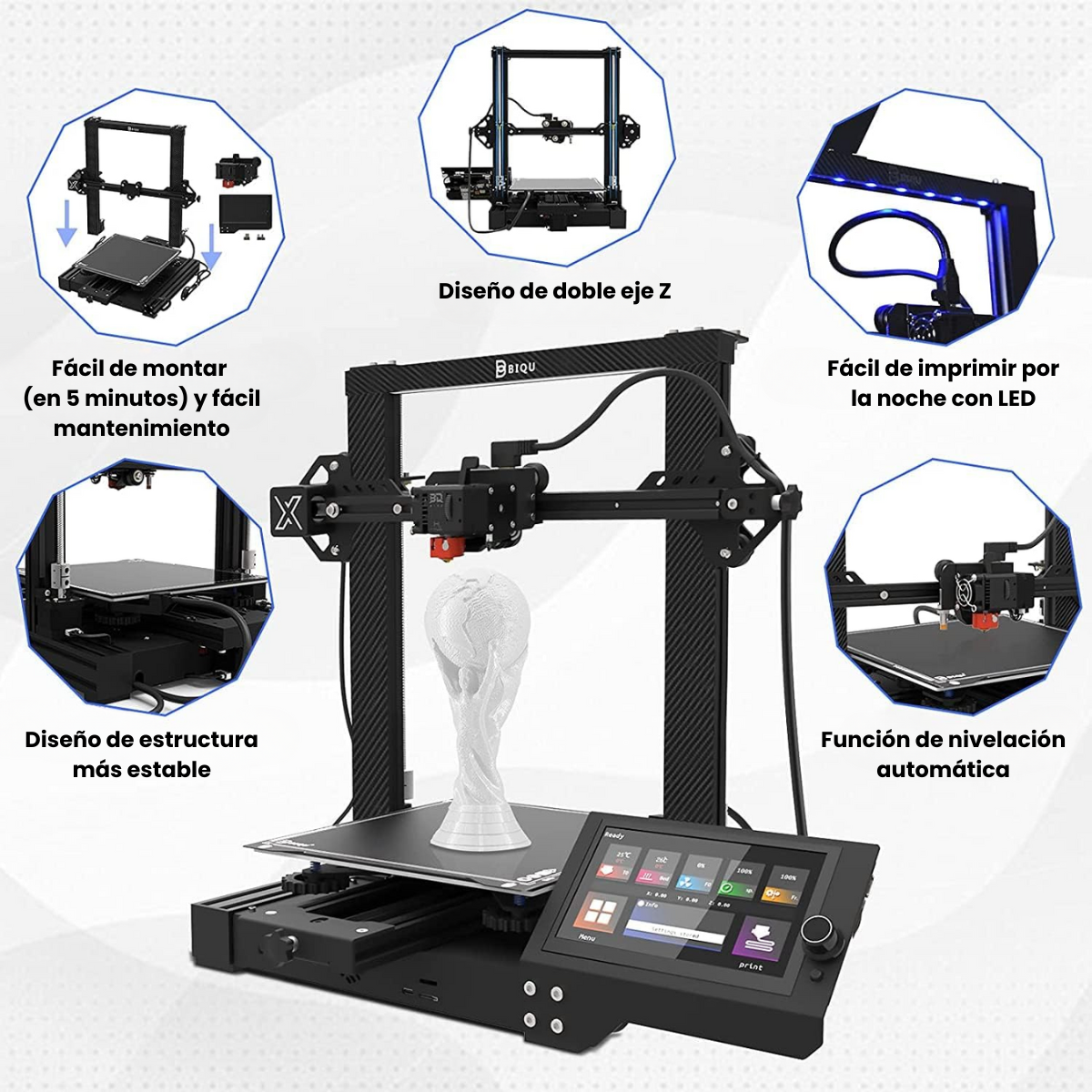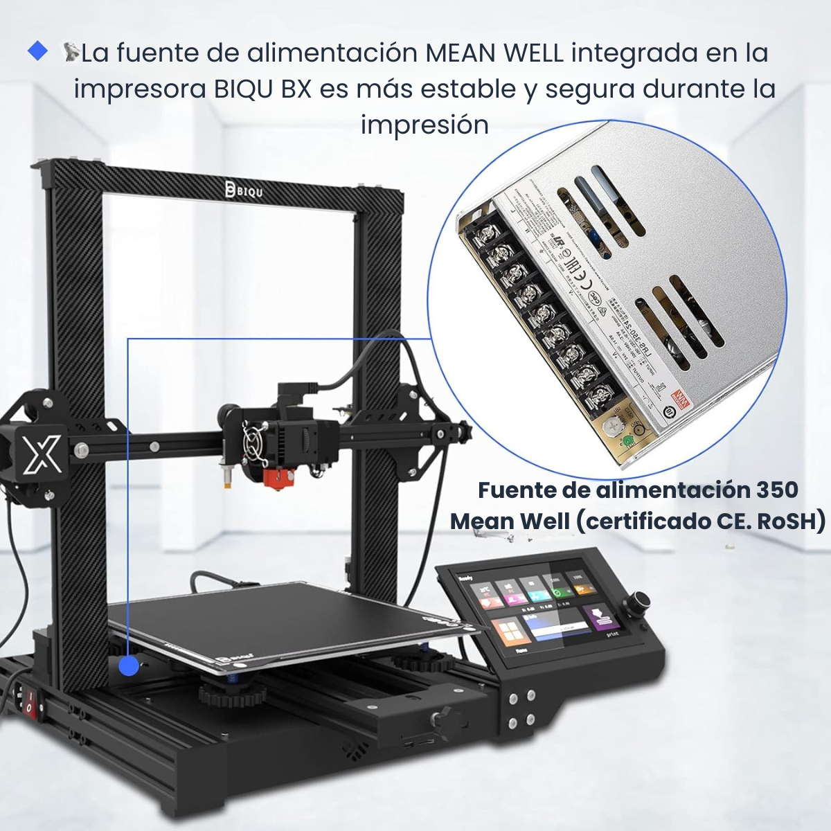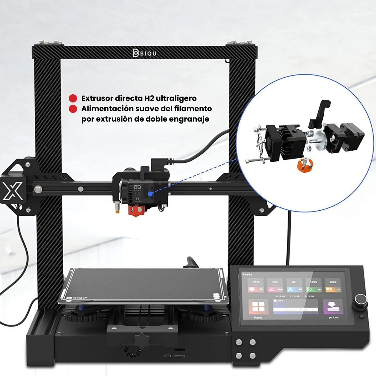 Nuevo Modelo de la marca BIQU de BIGTREETECH. Esta versión cuenta con una imponente pantalla táctil de 7 pulgadas con 3 modos de operación gracias al firmware Raspberry Pi. Ademas cuenta con sensor de autonivelacion preinstalado de fábrica. Con un volumen de 250x250x250mm es la primera impresora de la marca en ofrecer un formato cuadrado. La Biqu BX posee un potente extrusor directo de 211g que te permitirá imprimir en diversos materiales como ABS, TPU, NYLON, entre otros sin ningun tipo de problema. Cuenta con Octoprint incorporado, y adiciona el ultimo modelo de motherboard 32 bits SKR disponible hasta la fecha. Con esta confiable impresora podras imprimir inclusive de noche gracias a su led incorporado en el hotend. Cuenta ademas con una base de cama Biqu SSS Super Spring Steel, de acero flexible para mejorar aun mas la calidad final de tus impresiones.