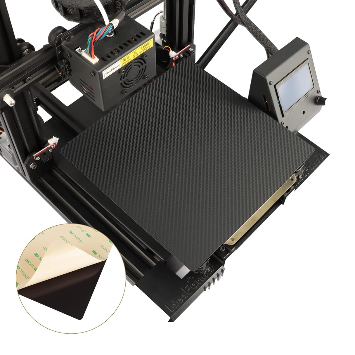 - Material PET/PEI: La capa PEI proporciona un agarre fuerte y duradero para filamentos como PLA, ABS y PETG, mientras que la capa PET asegura resistencia a altas temperaturas y una vida útil prolongada.