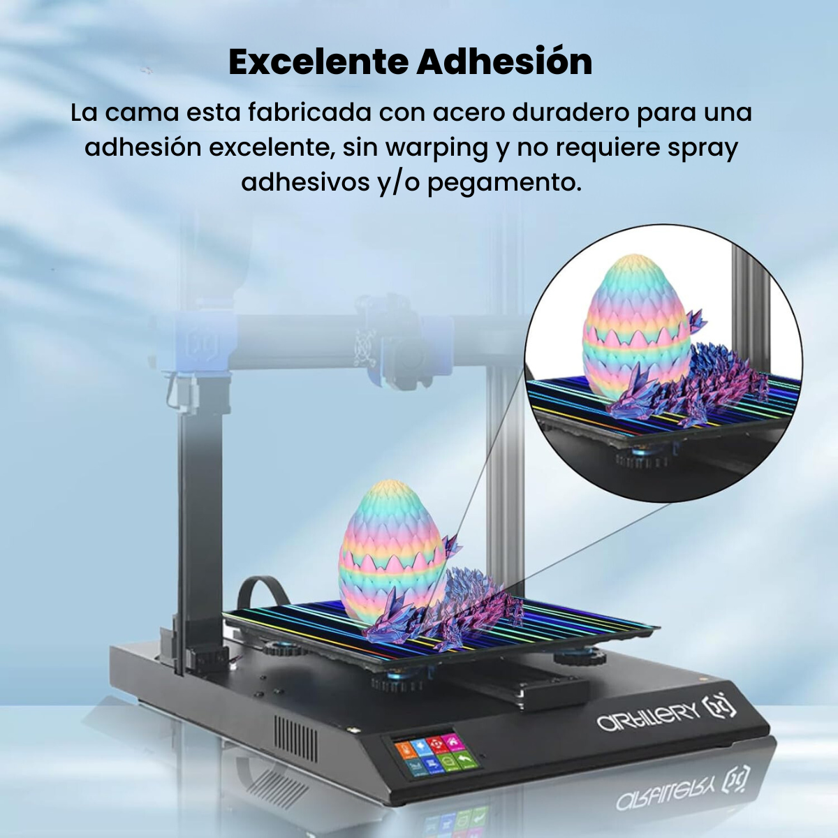 - Mejora la adherencia de las piezas durante la impresión, reduciendo problemas como el warping y garantizando un acabado perfecto.