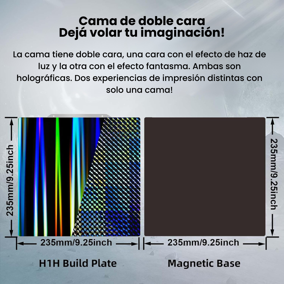 ¡Haz que tus impresiones 3D sean más fáciles y visualmente impresionantes con la Cama Magnética Holográfica 2 Efectos 235×235! Un accesorio esencial para mejorar tanto el rendimiento como la estética de tu impresora 3D.