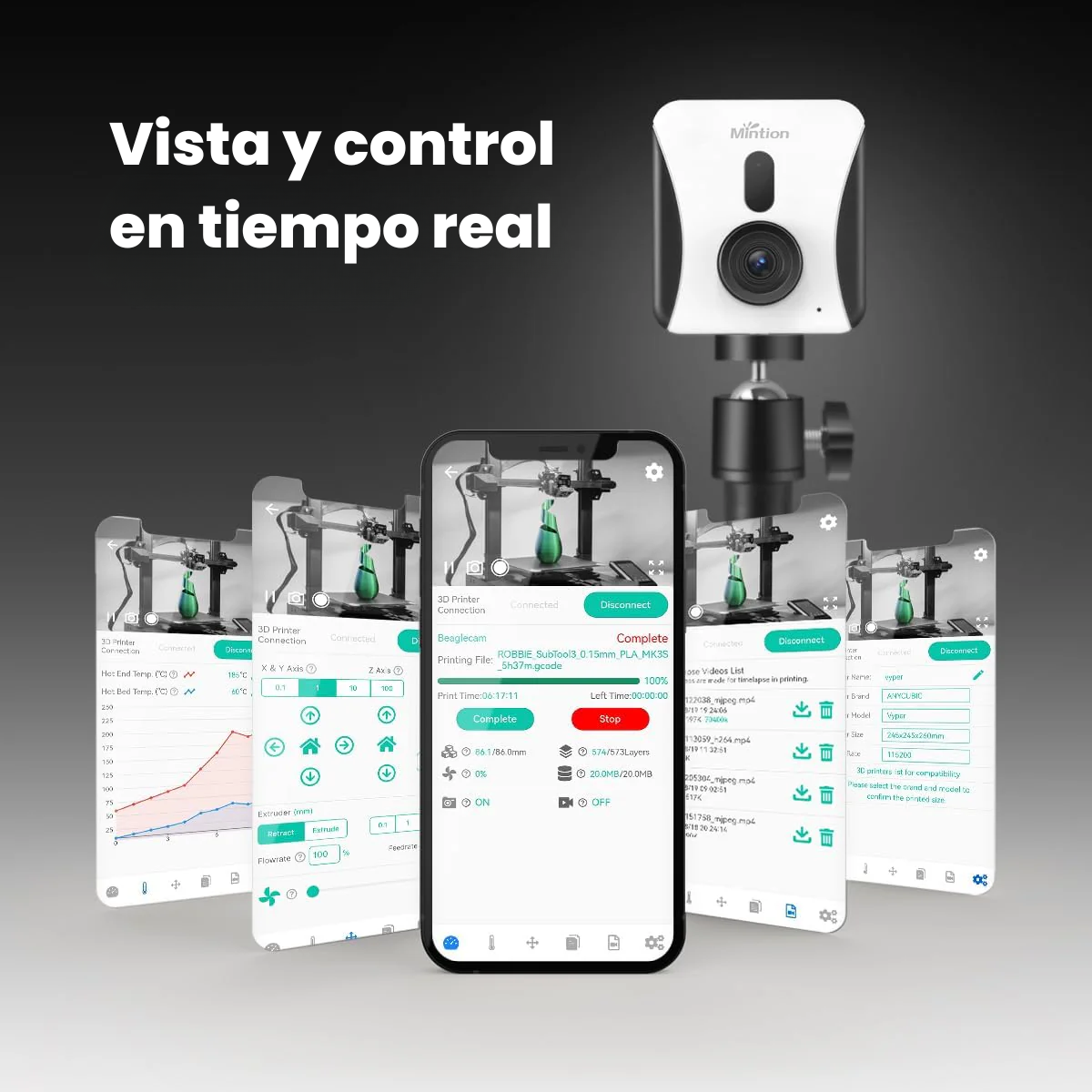 ¡Con la cámara, puedes supervisar el estado actual de la impresión en tiempo real! La impresora incluso se puede controlar de forma remota utilizando la cámara. Para ello, debes cargar el archivo de impresión en la cámara a través de la aplicación Beagleprint y pausar o cancelar el proceso de impresión de forma remota según lo desees o necesites.