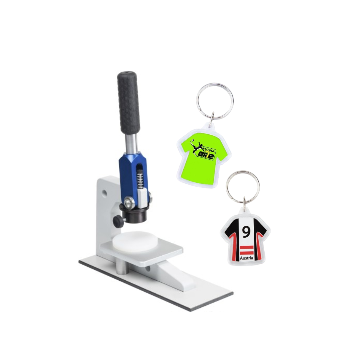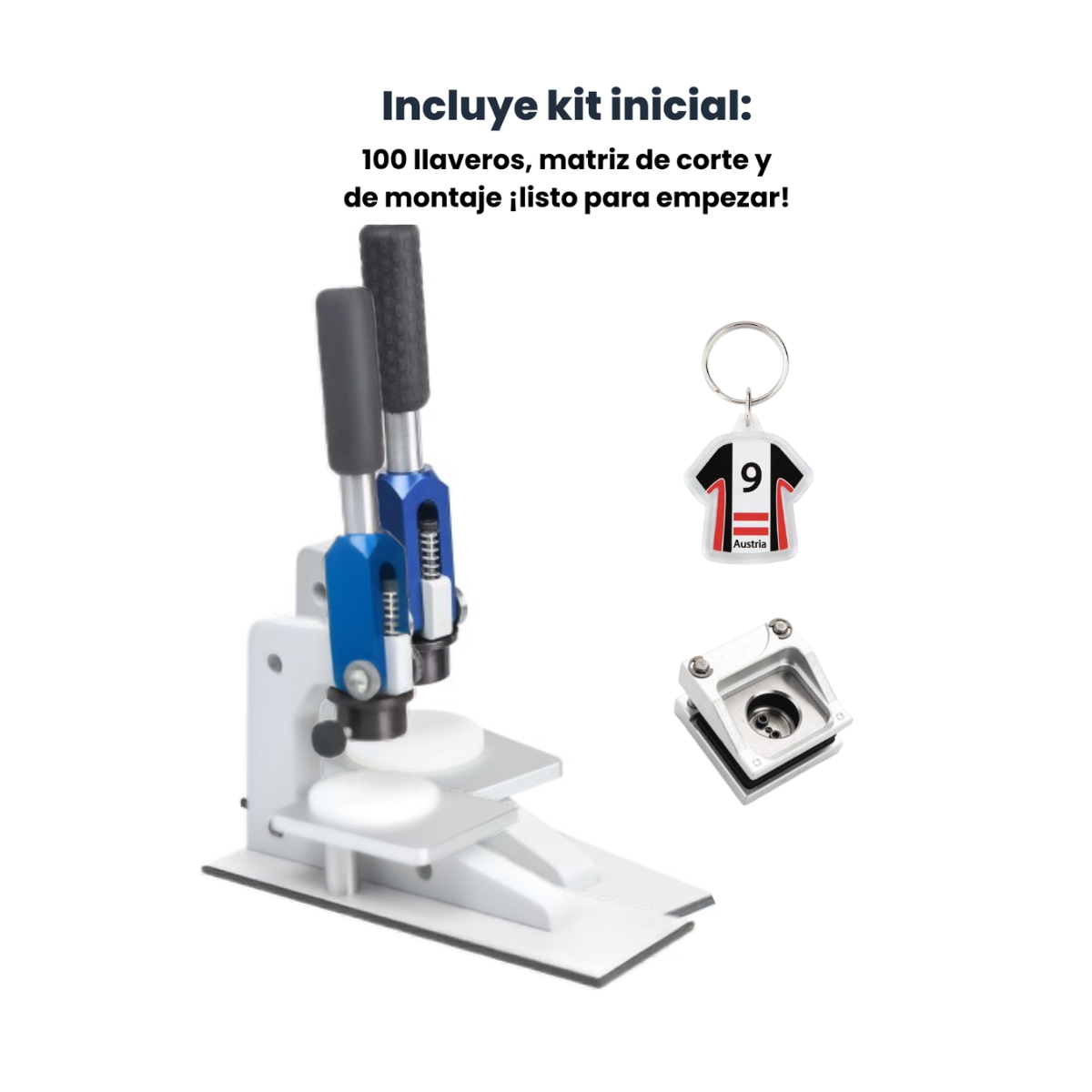 – Una máquina para hacer llaveros que te permitirá montar todas las partes del llavero así como cortar papel. Encuentra todas nuestras máquinas de llaveros aquí.