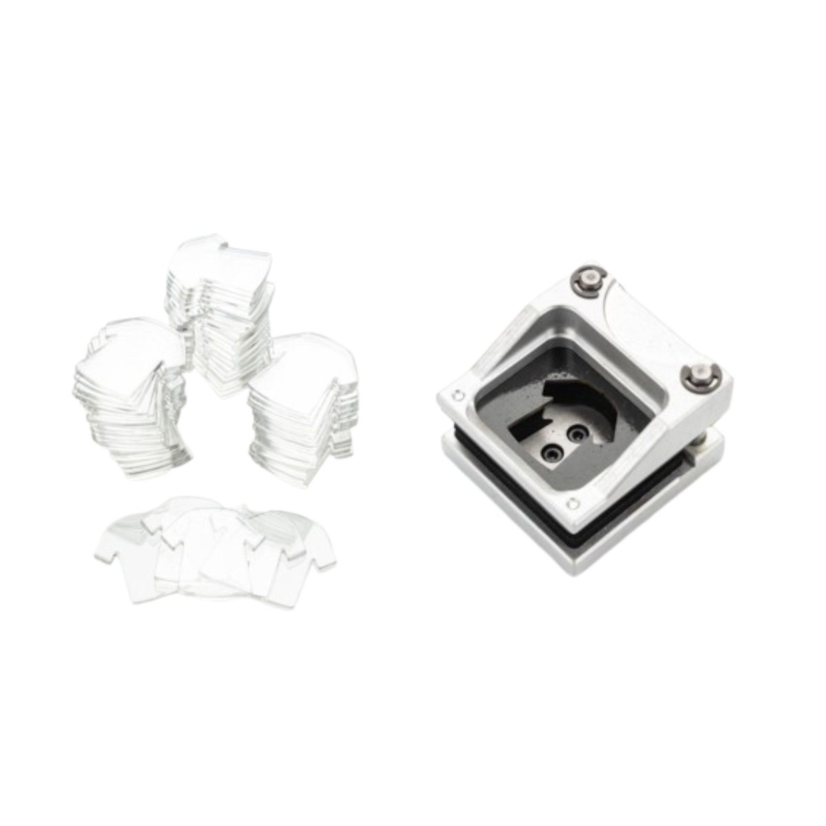 – Un útil de corte para cortar los diseños que has imprimido. Todas nuestras herramientas de corte se pueden utilizar con la máquina llavero, eche un vistazo a la categoría de matrices y útiles de corte para ver los diferentes modelos.