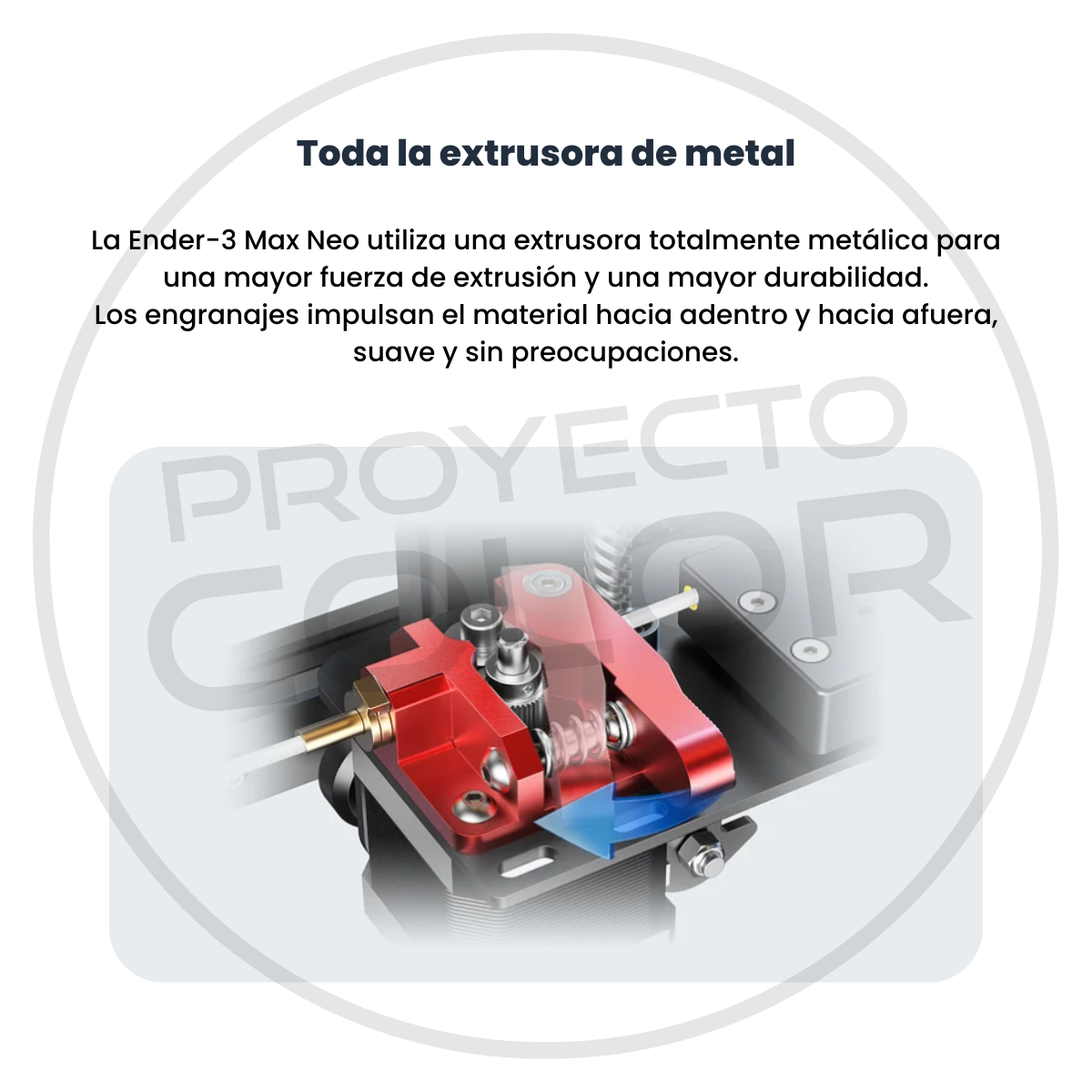 - Toda la extrusora de metal. La Ender-3 Max Neo utiliza una extrusora totalmente metálica para una mayor fuerza de extrusión y una mayor durabilidad. Los engranajes impulsan el material hacia adentro y hacia afuera, suave y sin preocupaciones.