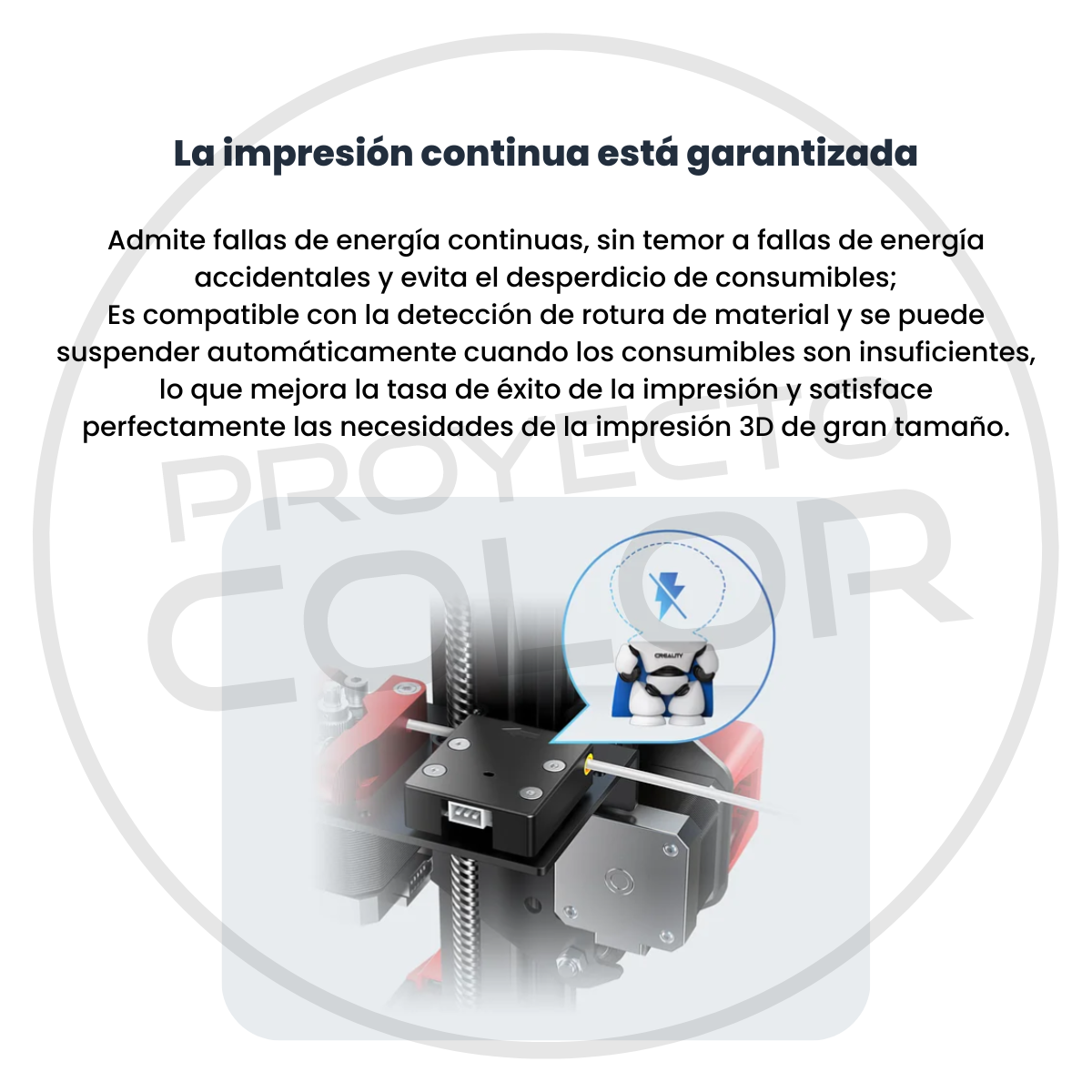 - La impresión continua está garantizada. Admite fallas de energía continuas, sin temor a fallas de energía accidentales y evita el desperdicio de consumibles; Es compatible con la detección de rotura de material y se puede suspender automáticamente cuando los consumibles son insuficientes, lo que mejora la tasa de éxito de la impresión y satisface perfectamente las necesidades de la impresión 3D de gran tamaño.