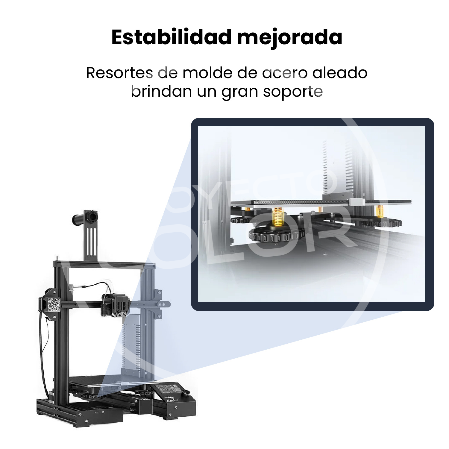 La Ender-3 NEO es esencialmente la Ender-3 Pro con caracteristicas nuevas incorporadas. Obtiene el volumen de construccion tipico de 220 x 220 x 250 mm, su aspecto icónico con pantalla LCD de 3 pulgadas e interfaz con perilla giratoria. Una de las novedades de la Ender-3 Neo es la inclusión de un sistema automatico de nivelacion de cama CR-Touch. Otra modificacion es la superficie de la cama, que ahora es de vidrio Carborundum. Creality mejora el extrusor bowden de esta versión, siendo ahora full metal., dandole mayor durabilidad, mejor manejo del filamento y mayor fuerza de extrusion. Se adapta mejor a filamentos flexibles que su antecesora. Esta equipada con una placa base silenciosa y controladores paso a paso silenciosos. Posee una mejor disipacion del calor, en el cabezal de impresion ya que este se ha renovado mejorando el diseño.
