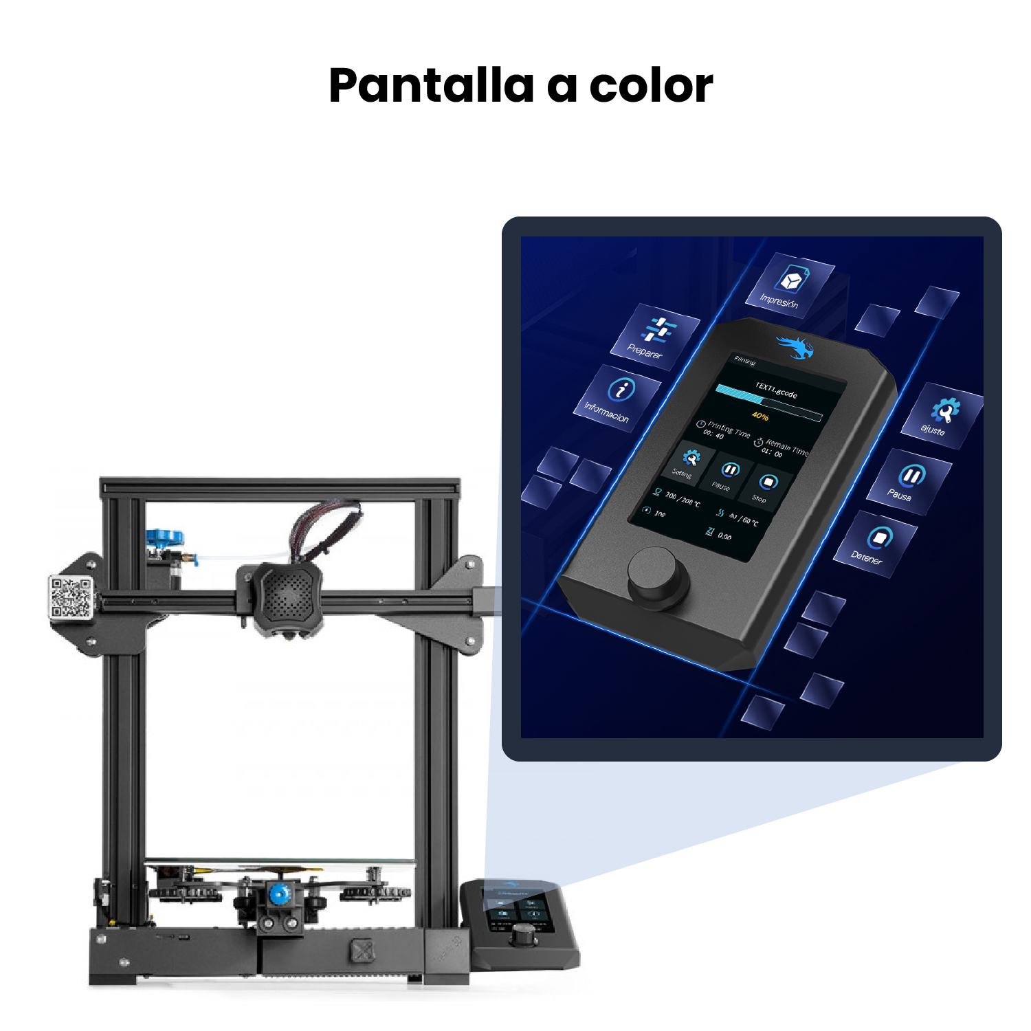 - Materiales de impresión : PLA, TPU, PETG