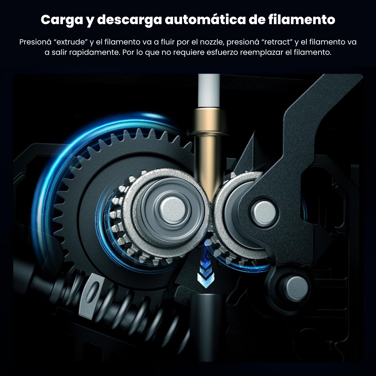 Carga y descarga automática de filamentos: Toque “Extruir” y el filamento saldrá de la boquilla suavemente. Toca “Retraer” y el filamento saldrá rápidamente. Por lo tanto, reemplazar el filamento no supone ningún esfuerzo.