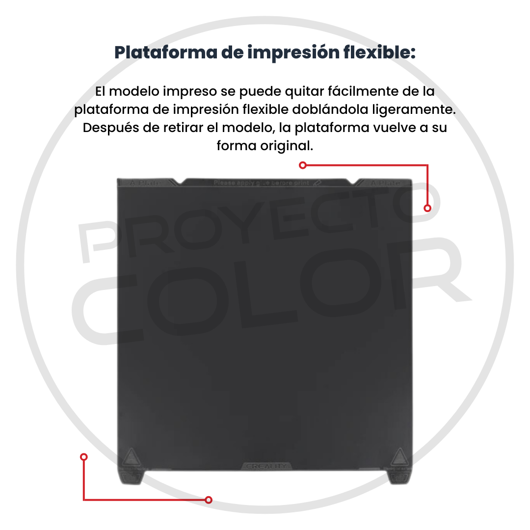 Plataforma de impresión flexible: El modelo impreso se puede quitar fácilmente de la plataforma de impresión flexible doblándola ligeramente. Después de retirar el modelo, la plataforma vuelve a su forma original.