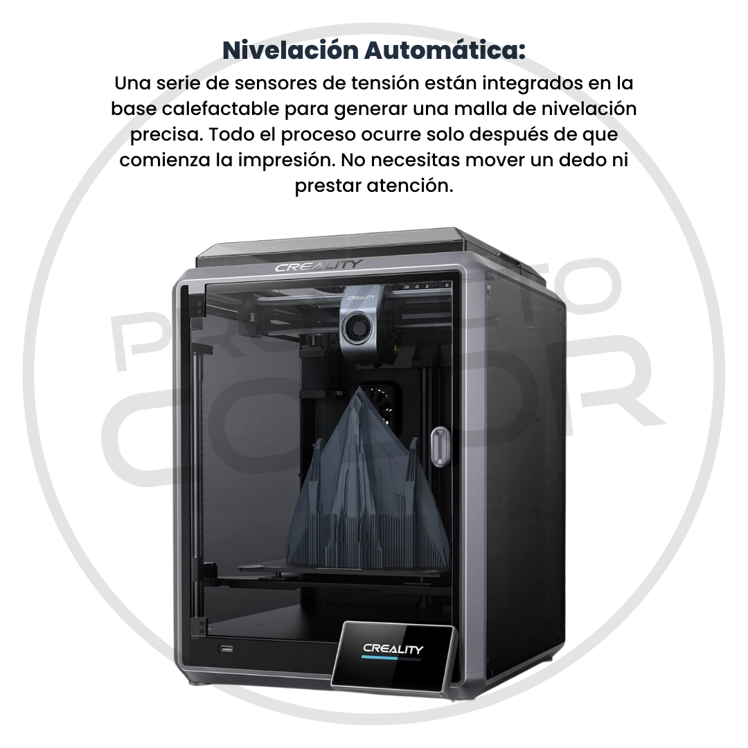 Nivelación Automática: Una serie de sensores de tensión están integrados en la base calefactable para generar una malla de nivelación precisa. Todo el proceso ocurre solo después de que comienza la impresión. No necesitas mover un dedo ni prestar atención.