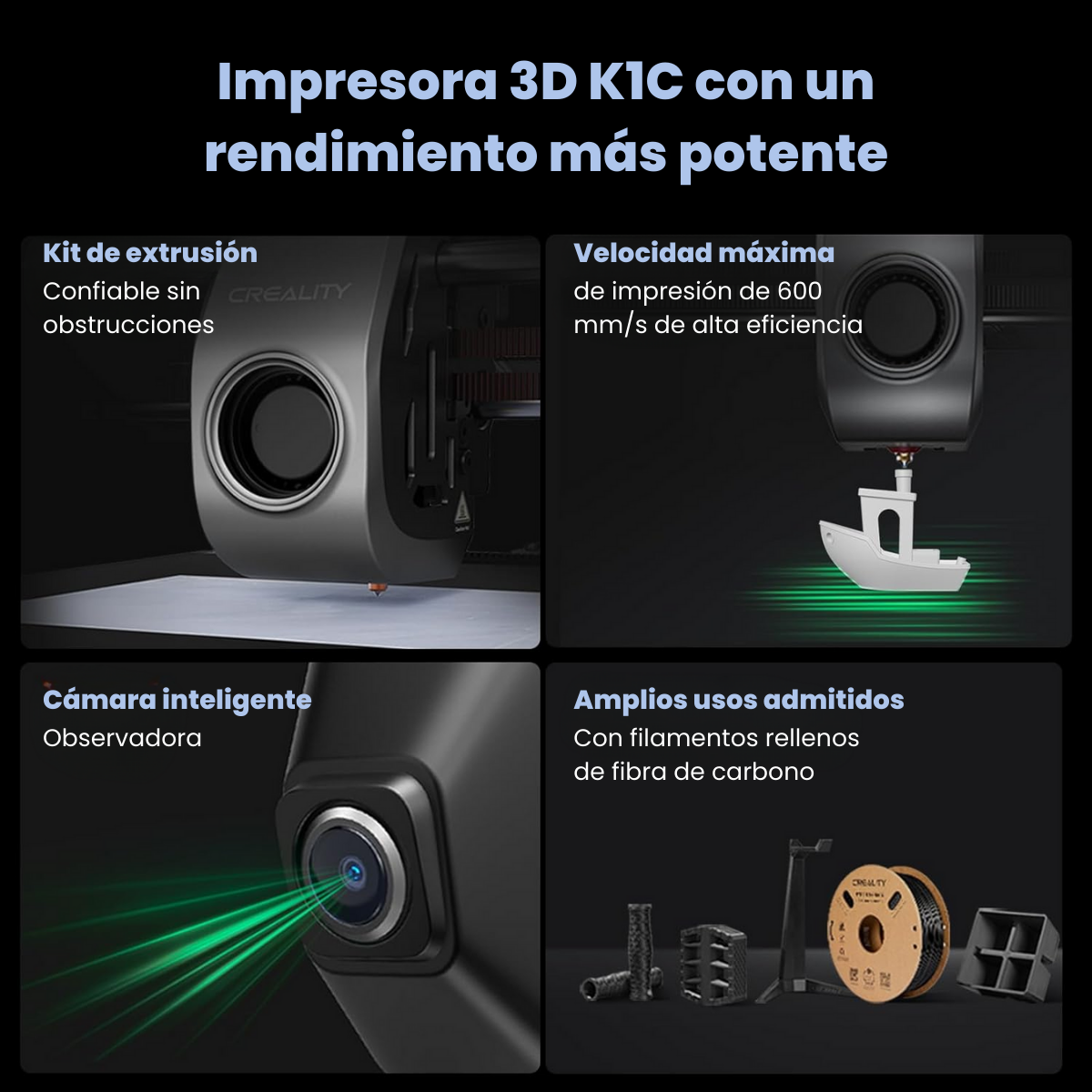 La Creality K1C es una versión mejorada de la K1 anterior, con una impresionante velocidad máxima de impresión de hasta 600 mm/s y opciones adicionales como una cámara con IA y una boquilla de cambio rápido. Con su diseño elegante y su cámara robusta, la K1C proporciona una experiencia de impresión confiable y estable con una precisión y exactitud incomparables. Con un volumen de construcción de 220x220x250 mm, el K1C permite la creación de modelos más grandes y complicados. La Creality K1C redefine la impresión con su estructura robusta, tecnología avanzada y capacidad para materiales reforzados. Ofrece impresiones de alta calidad a velocidades sorprendentes, con una interfaz intuitiva y diseño elegante, perfecta para entusiastas y profesionales que buscan innovación y eficiencia.