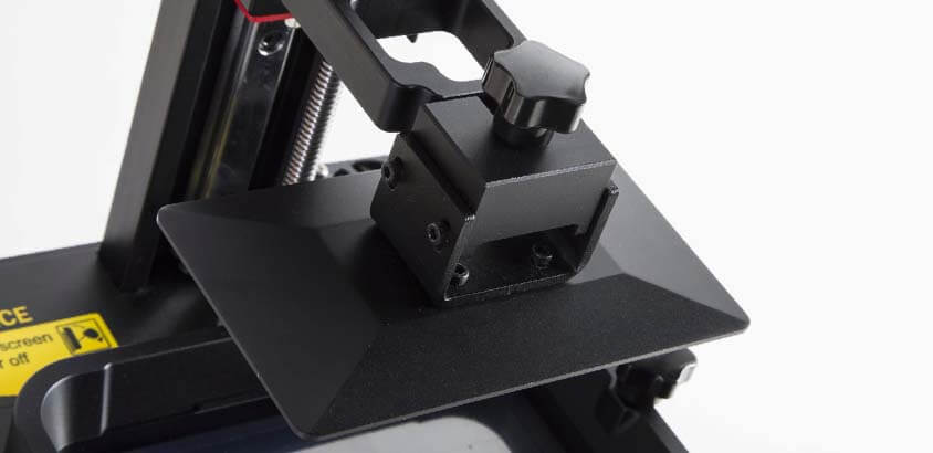 3- Nivelación Rápida: Nivelación rápida en el sentido de que la máquina bajará la placa de impresión a la tina por usted, sí, la LD-002R es una nivelación rápida. Hay cuatro tornillos hexagonales en la placa de impresión; aflójelos antes de dejar caer la placa y se alineará al nivel de la pantalla. Apriete y listo.