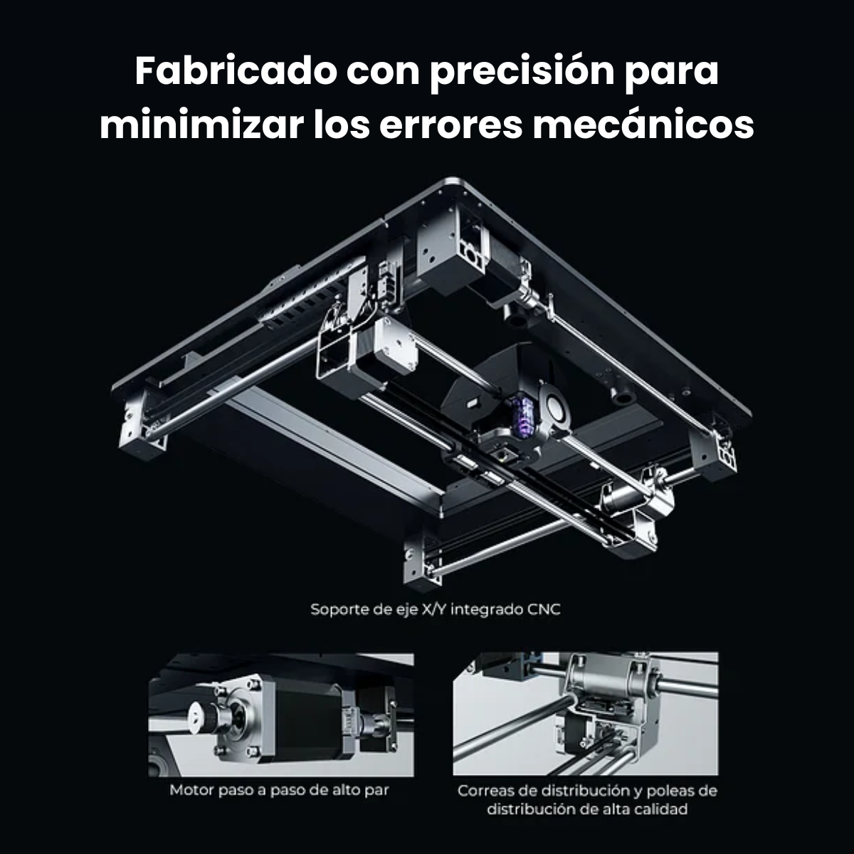 Minimice los errores mecánicos: El sistema de pórtico de eje X/Y integrado está mecanizado por CNC con una precisión de 0,01 mm para un ajuste perfecto. El preciso motor paso a paso de alto par y la correa de distribución y las poleas duraderas reducen aún más los errores mecánicos y aumentan la precisión.