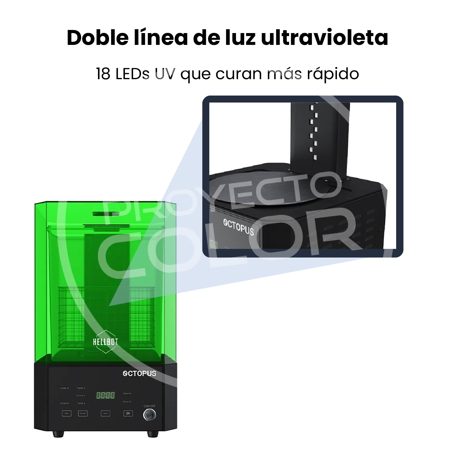 Doble línea de luz ultravioleta: 18 LEDs UV que curan más rápido en modelos de gran volumen.
