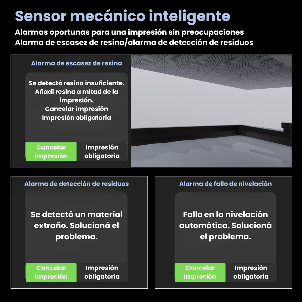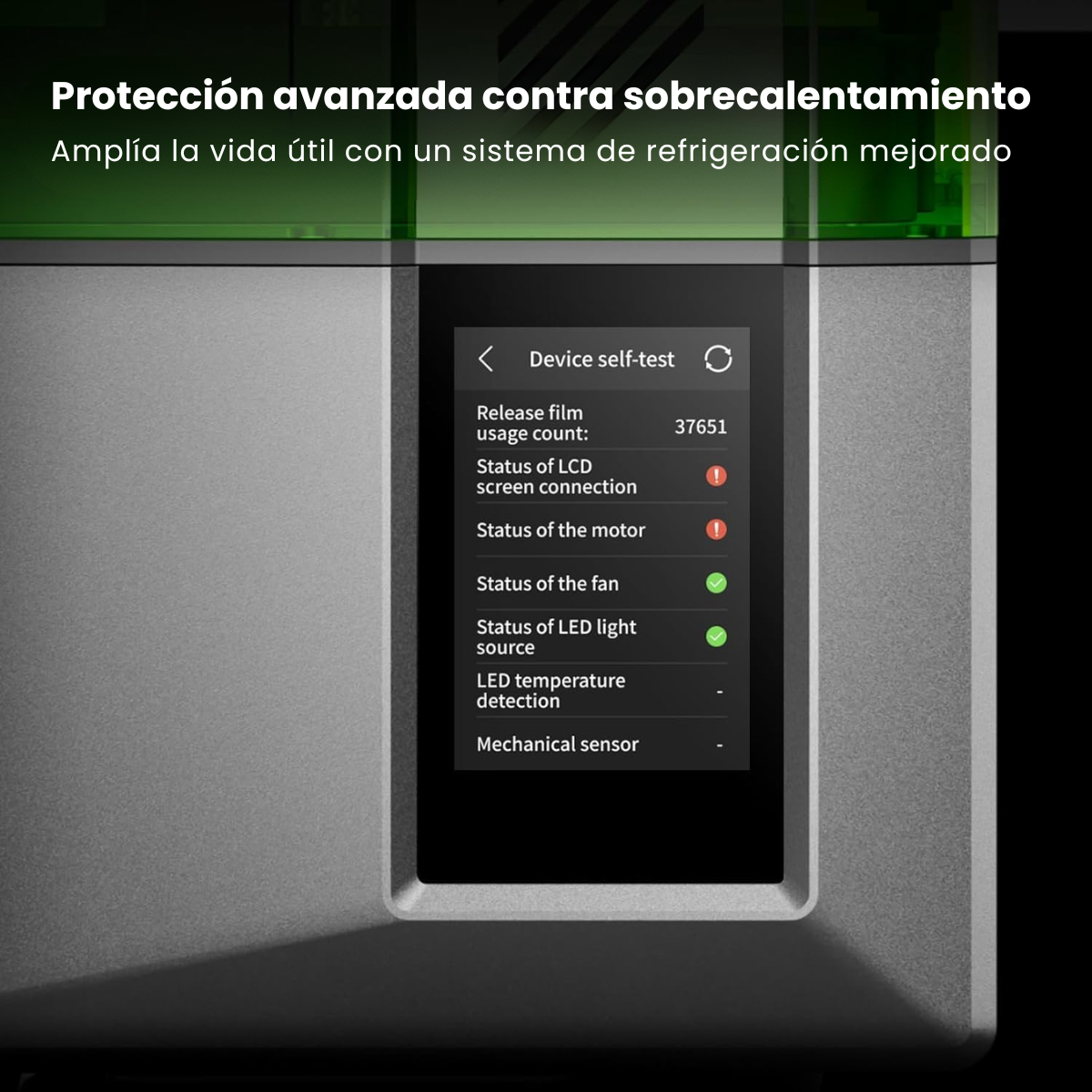 Protección Inteligente contra Sobrecalentamiento: Si la temperatura de los LED supera los 80 °C, la impresora se detiene automáticamente y emite una alarma, garantizando un funcionamiento seguro y prolongando la vida útil del equipo.