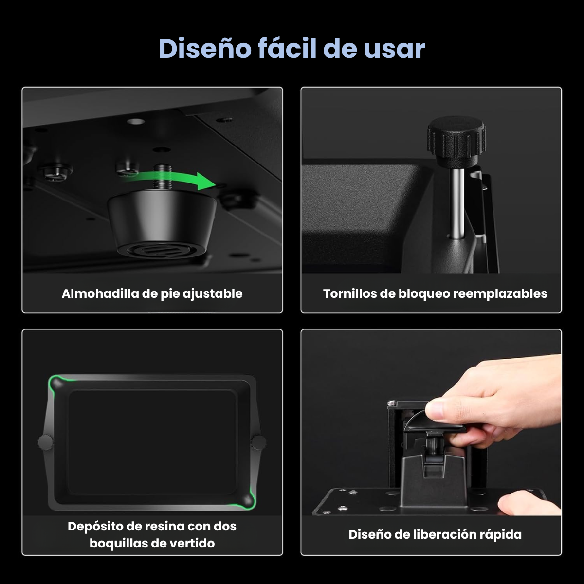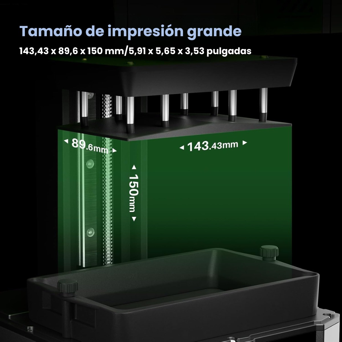 Pantalla LCD Monocromática 4K: Equipada con una pantalla LCD monocromática de 6.6 pulgadas que ofrece una resolución de 4098 x 2560 píxeles, garantizando detalles nítidos y superficies lisas en cada impresión.