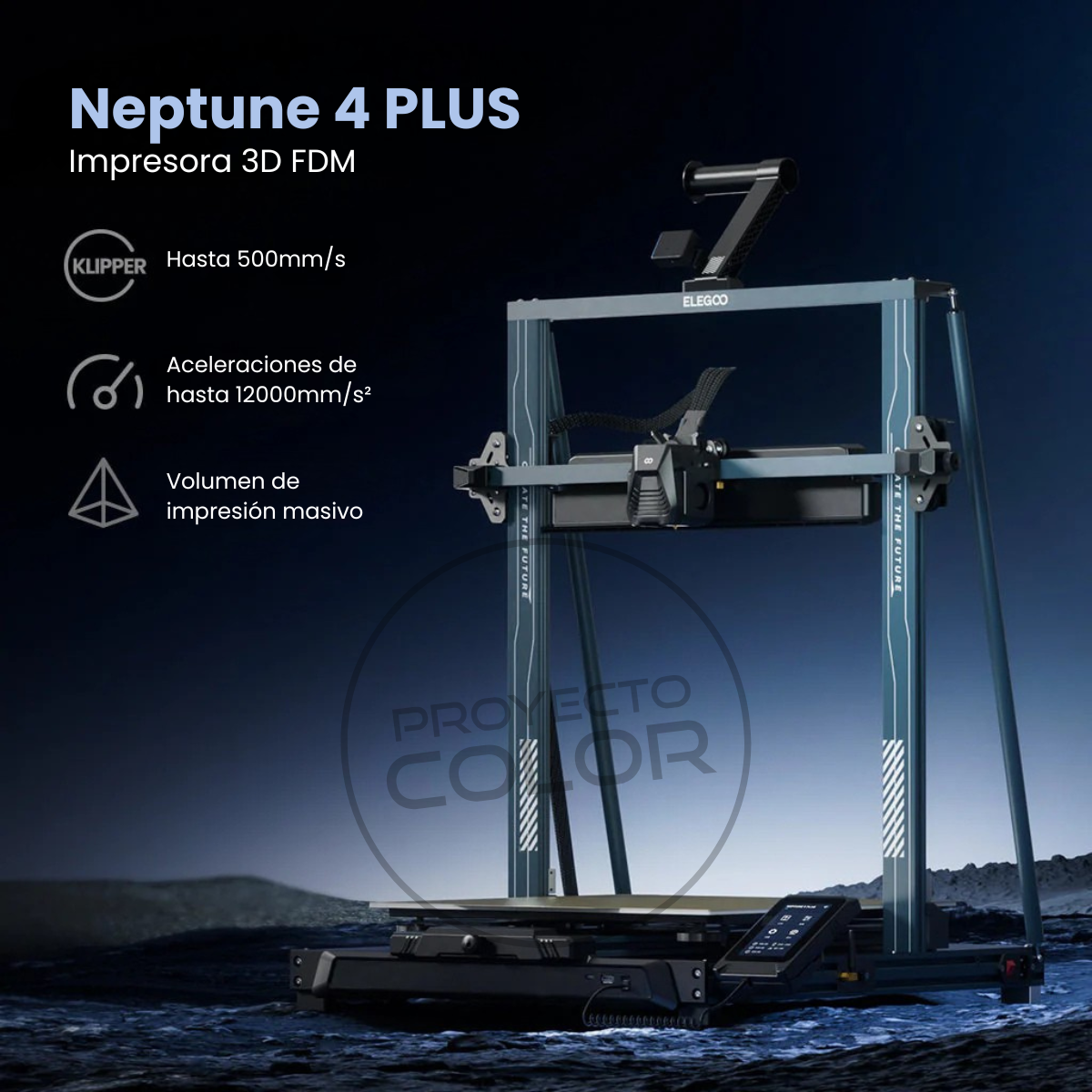 Neptune 4 Plus de Elegoo es una impresora 3D FDM ultrarrápida con un volumen de impresión de 320 x 320 x 385 mm. Con una velocidad máxima de 500 mm/s, una aceleración de 12.000 mm/s² y firmware Klipper, la potente impresora 3D te permite sumergirte en nuevas dimensiones de creatividad.