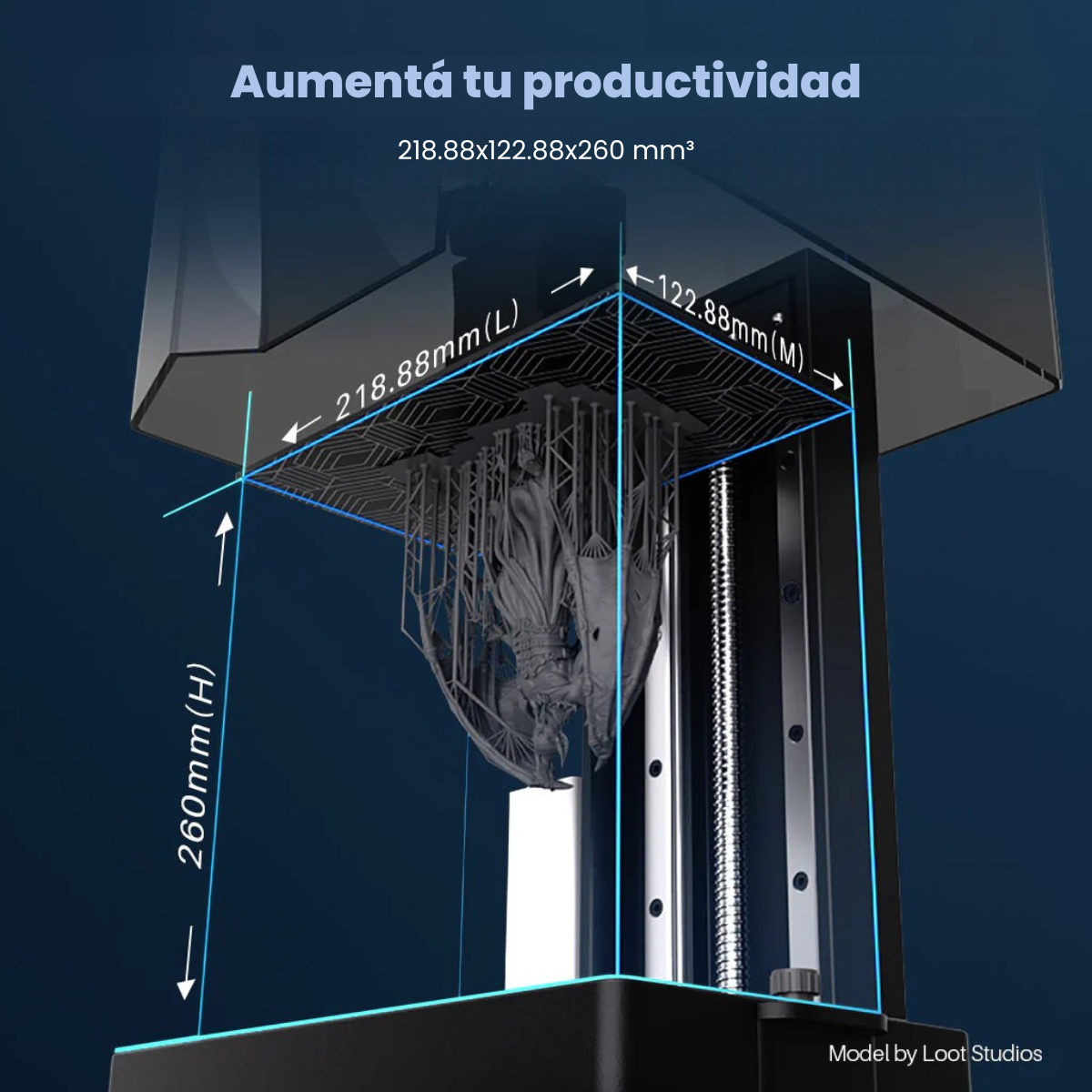 Gran volumen de impresión para una mayor productividad: Con un volumen de impresión de 218,88 x 122,88 x 260 mm, puedes realizar proyectos creativos con modelos más grandes o varios modelos pequeños al mismo tiempo.