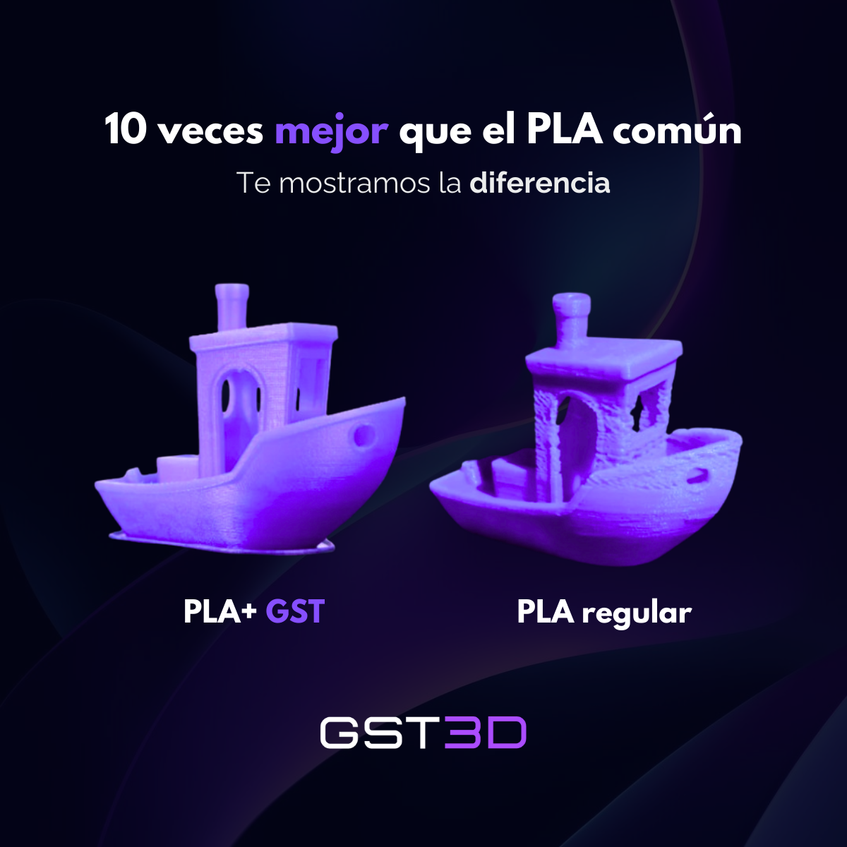 Este material se destaca por su calidad de exportación, superando ampliamente al PLA regular. Tus impresiones tendrán una rigidez excepcional y una superficie brillante.