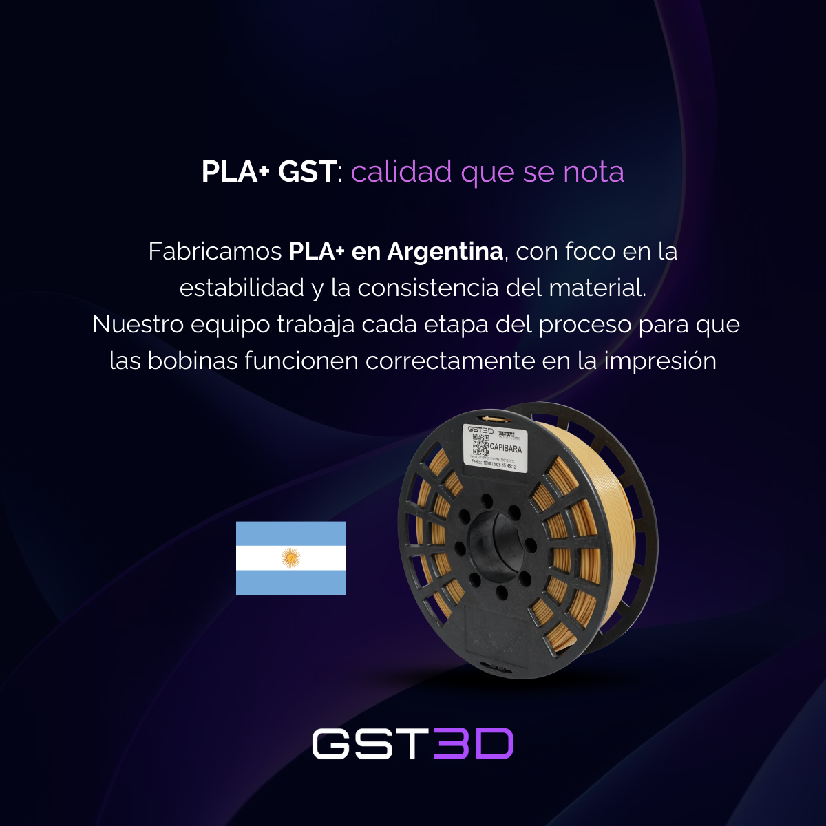 Apoyás la producción local al elegir el GST3D PLA+ Black Edition, que proviene de Argentina.