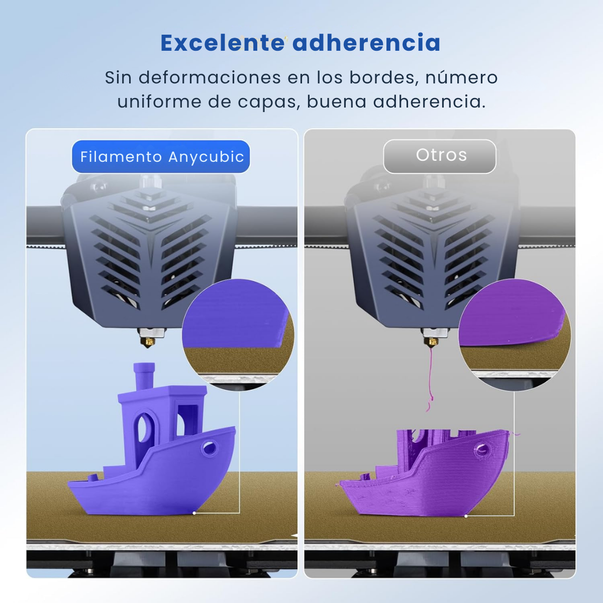 Bajo olor y excelente adherencia en la mayoría de las impresoras FDM.