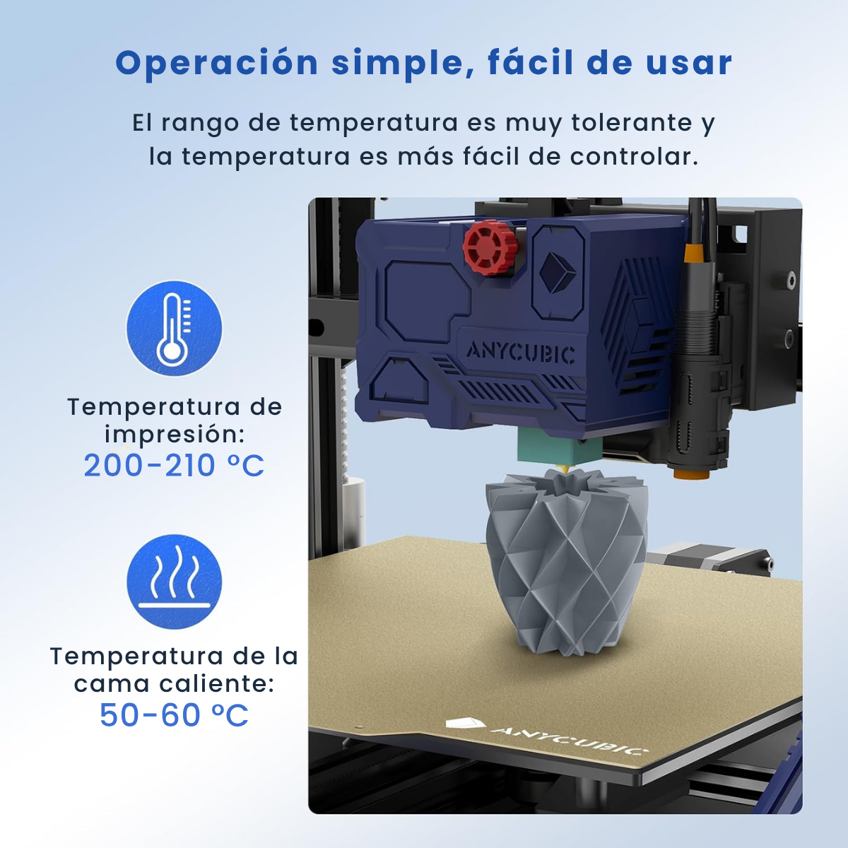 El Filamento PLA de Anycubic es un material confiable, estable y ecológico, ideal para usuarios que buscan impresiones consistentes y con excelente calidad superficial. Fabricado a partir de materias primas de origen vegetal, ofrece una experiencia de impresión con bajo olor, buena adhesión y un comportamiento predecible en la mayoría de impresoras FDM que utilizan filamento de 1,75 mm.