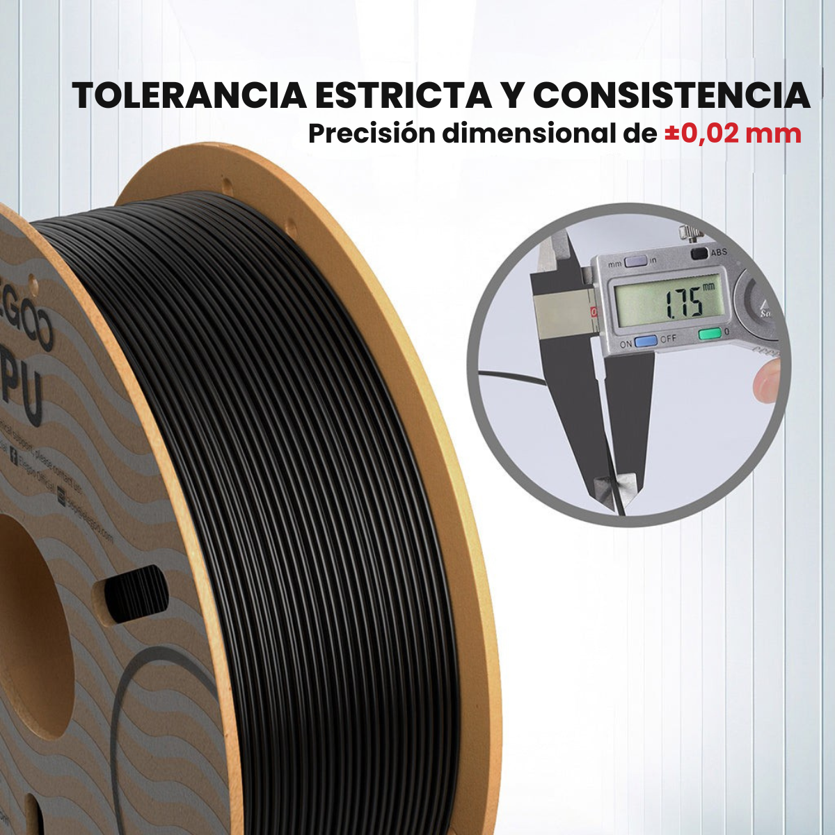 - Precisión dimensional de ±0,02 mm: nuestro filamento de TPU está fabricado con tolerancias estrictas con una precisión dimensional de ±0,02 mm, lo que garantiza que sus impresiones tendrán una precisión y consistencia excepcionales.