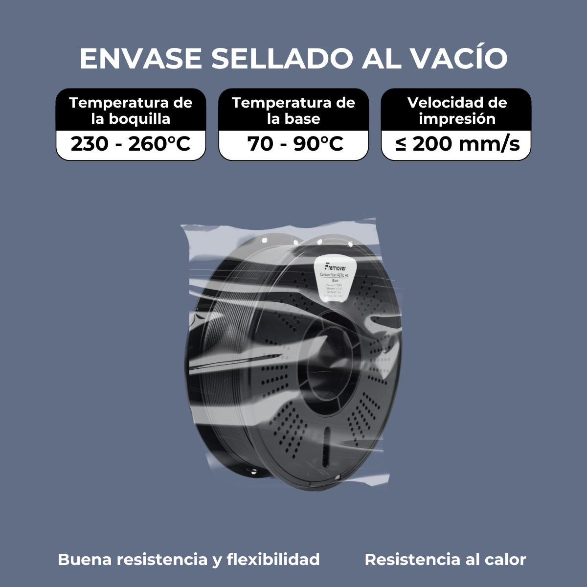 Combine resistencia y velocidad con Fremover Carbon Fiber PETG High Speed. Reforzado con fibra de carbono, este filamento está diseñado para impresiones técnicas que requieren alta rigidez, ligereza y precisión dimensional, con una impresión fluida de hasta 200 mm/s.