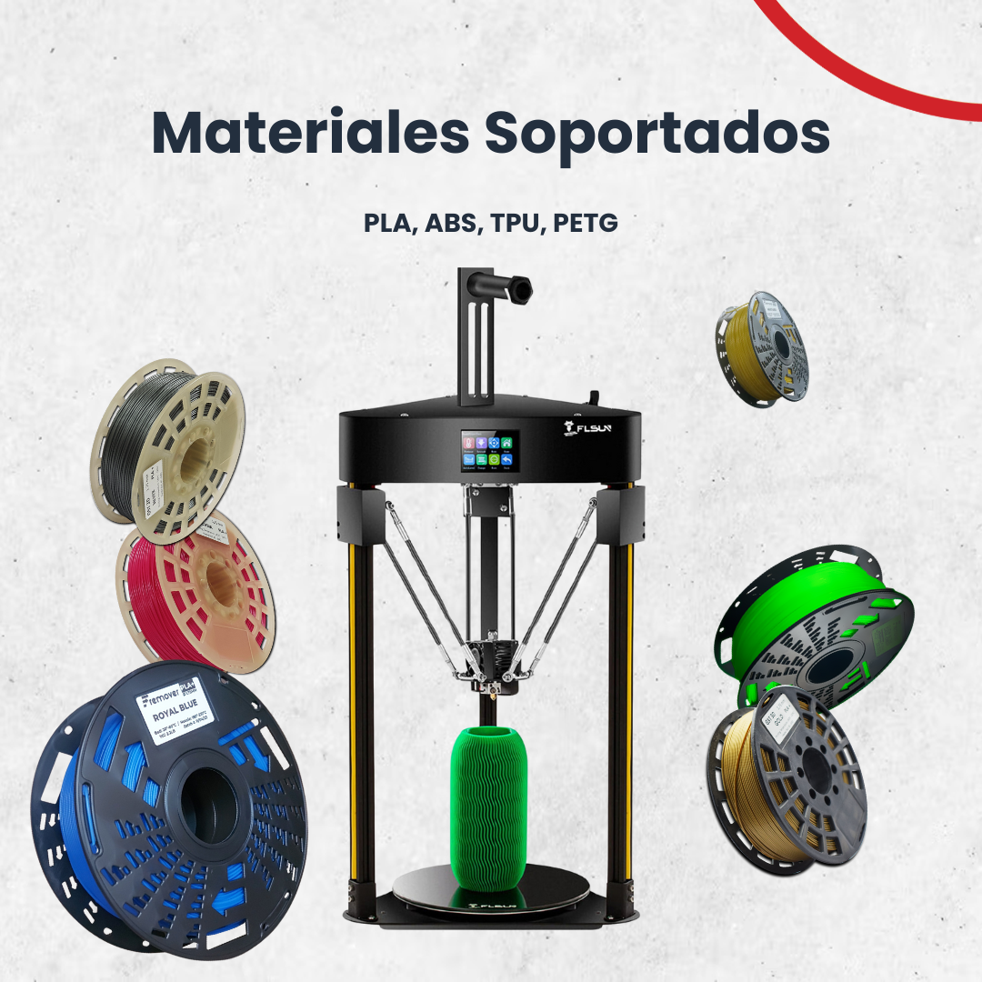 - Soporte de filamento: PLA / ABS / PETG