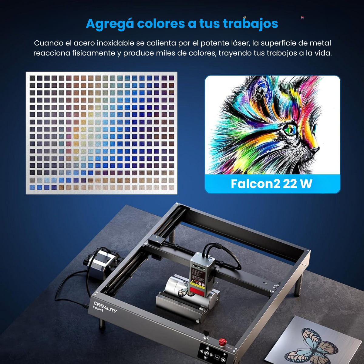 La CR-Laser Falcon2 es una máquina de grabado y corte láser de alta potencia y alto rendimiento que ha sido diseñada para satisfacer las necesidades de una amplia variedad de usuarios. Con su impresionante potencia de 22W y velocidad de grabado ultra rápida de 25,000 mm/min, esta máquina ofrece la combinación perfecta de potencia y velocidad para producir resultados precisos y detallados en una variedad de materiales, incluyendo la posibilidad de añadir color a los resultados.