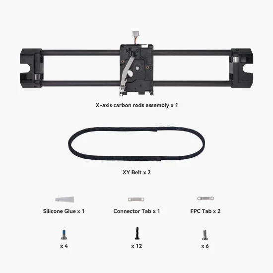 – Conjunto de varillas de carbono del eje X * 1 – Correa XY * 2 – Pestaña del conector * 1