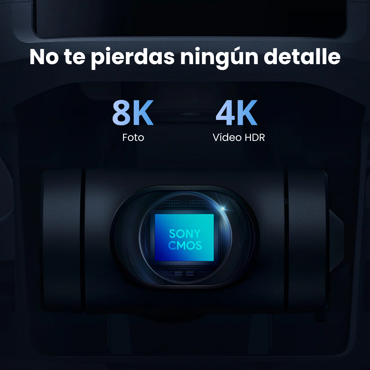 – Gimbal mecánico de 3 ejes: Estabilización precisa que asegura imágenes y videos suaves y sin vibraciones, incluso en condiciones de viento.