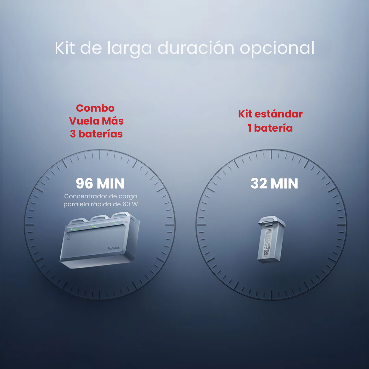 – Tiempo máximo de vuelo: Hasta 96 minutos (con 3 baterías)